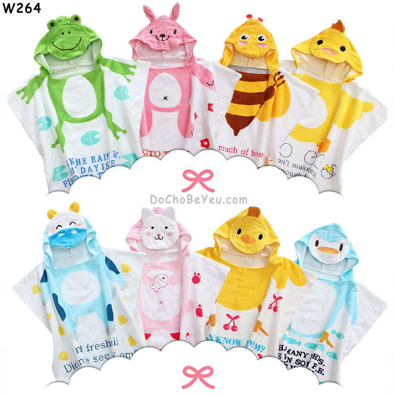 Áo choàng tắm cho bé đi biển hình thú cực dễ thương: nào ếch, vịt, thỏ, bò sữa, ong....