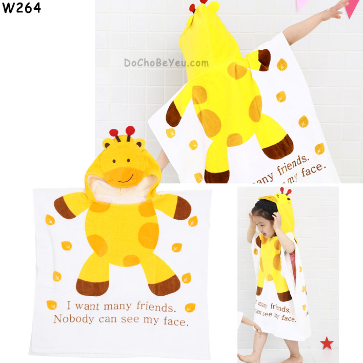 - Khăn choàng có mũ nhiều hình thú ngộ nghĩnh. Ngoài khi tắm ra thì bé có thể chơi trò hóa trang, đóng kịch với mẹ nữa.