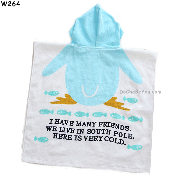 - Mùa hè là mùa của đi bơi, đi biển nè. Khăn choàng thiết kế chui đầu tiện lợi, sau khi dùng lau khô bé có thể vừa mặc vừa chơi cát, nghỉ mệt trên bờ ---> có nón giúp che cái nắng gay gắt của mùa hè, không sợ nhiễm gió lạnh, nhiễm bệnh cho bé. Khăn choàng bảo vệ giúp bé tha hồ vui chơi mà vẫn khỏe mạnh an toàn.