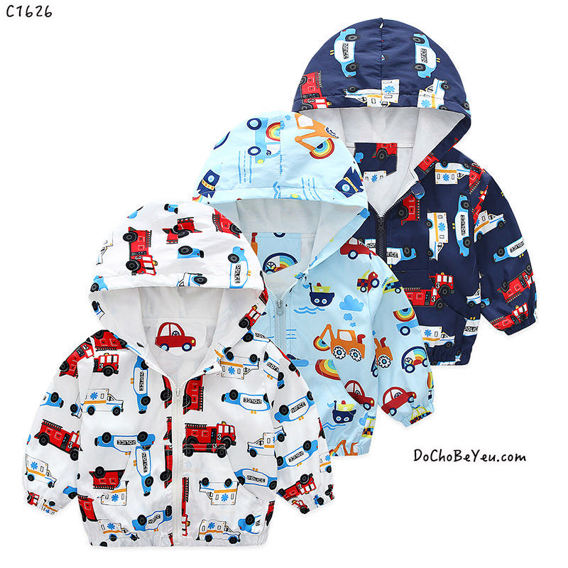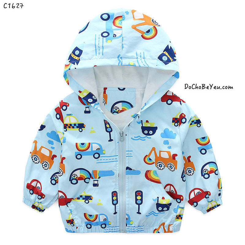 - Áo khoác dù cho bé trai 1-5 tuổi liền nón trùm đầu dễ thương với chất liệu vải dù bền đẹp bên trong có lớp vải cotton mỏng, thoáng mát, thông khí.