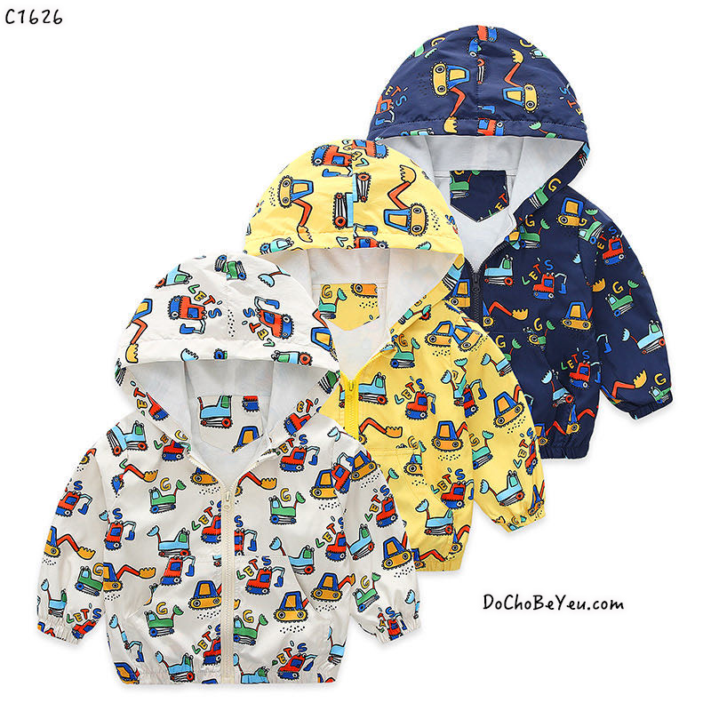 - Áo khoác dù cho bé trai 1-5 tuổi liền nón trùm đầu dễ thương với chất liệu vải dù bền đẹp bên trong có lớp vải cotton mỏng, thoáng mát, thông khí.