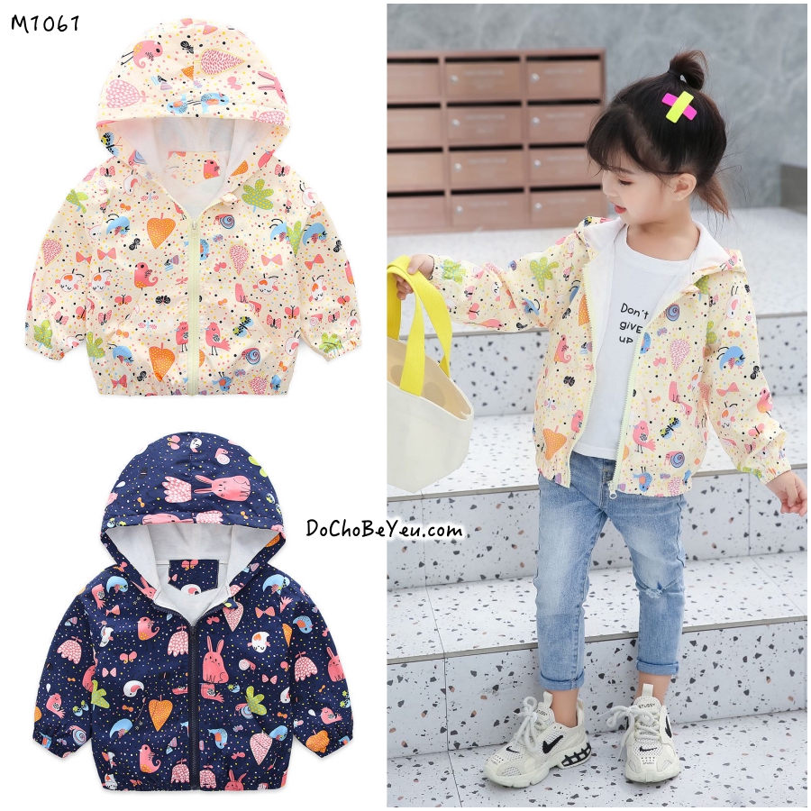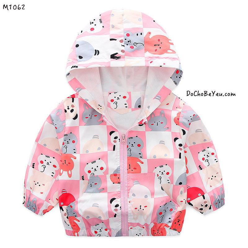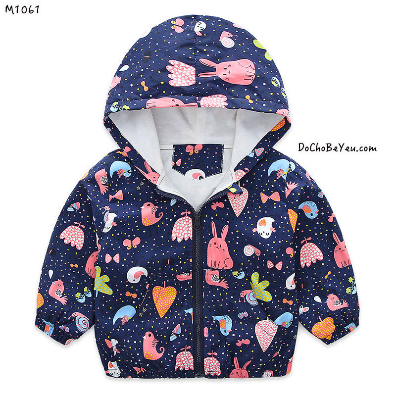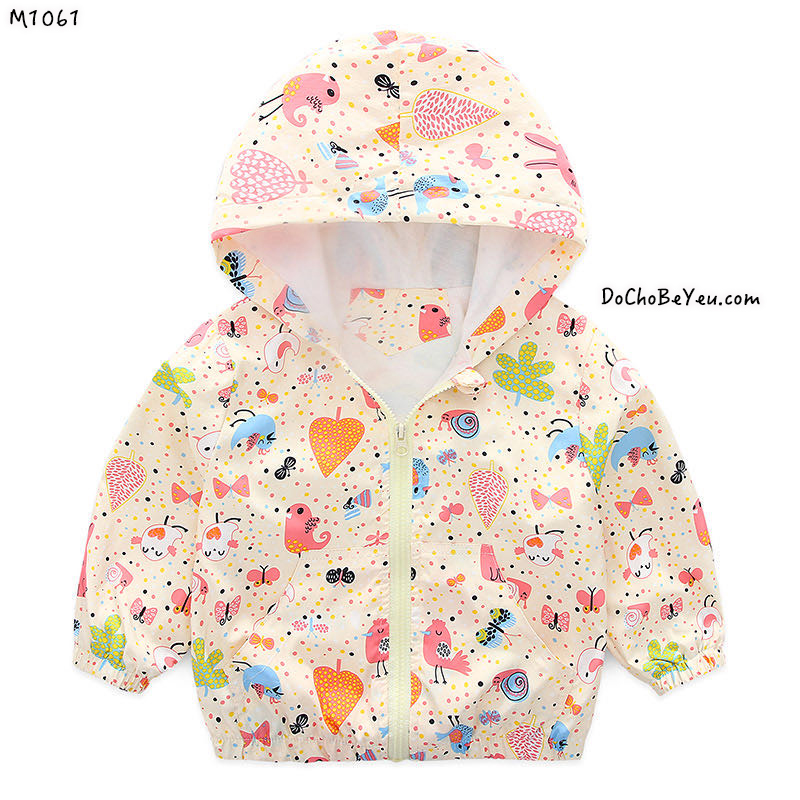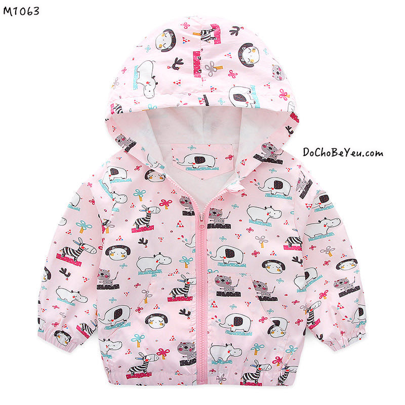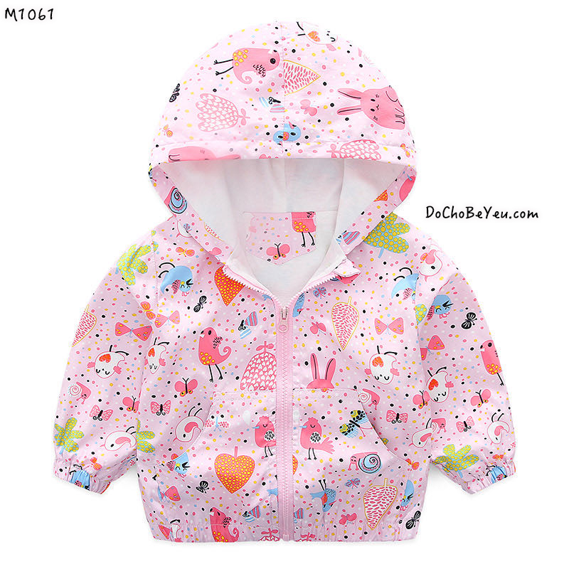 - Áo khoác trẻ em gái 1-5 tuổi liền nón trùm đầu dễ thương với chất liệu vải dù bền đẹp bên trong có lớp vải cotton mỏng, thoáng mát, thông khí.