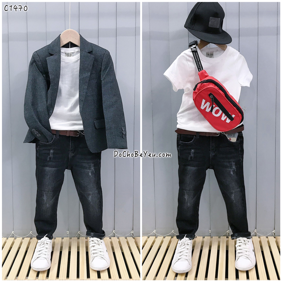 Áo thun police Thái Lan size 2-6 tuổi 120k. Quần jean đen 3-12 tuổi 240k