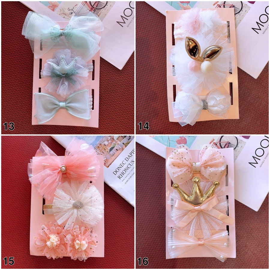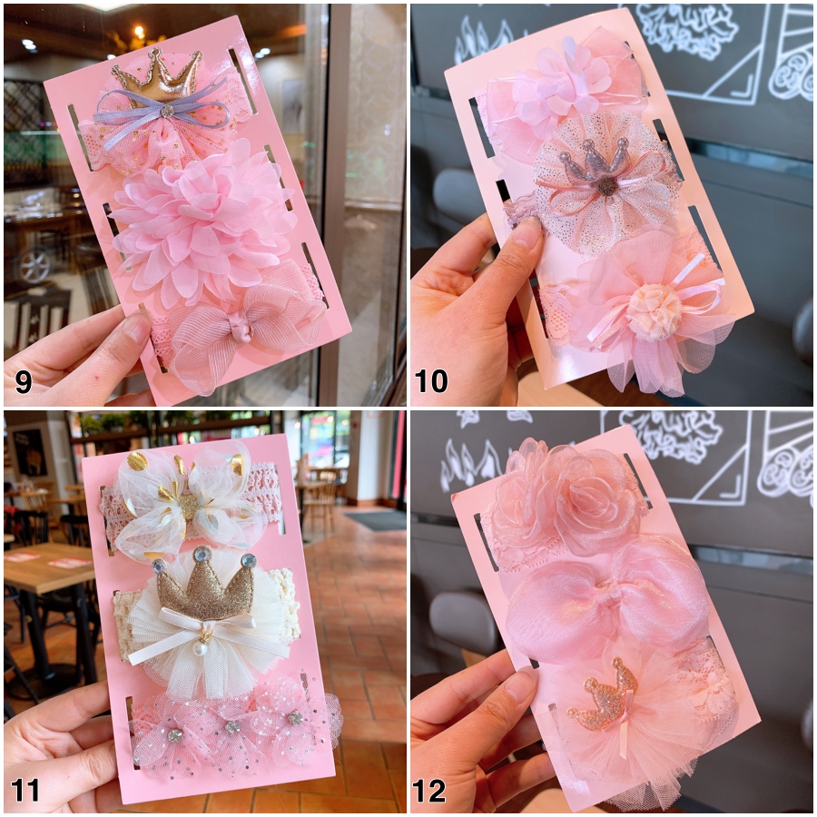 - Set gồm 3 mẫu băng đô cho bé gái sơ sinh màu sắc khác nhau cho mẹ dễ dàng phối cùng nhiều mẫu quần áo chỉ với 90k kèm luôn cả hộp làm quà tặng cực sang luôn mẹ nhé.
