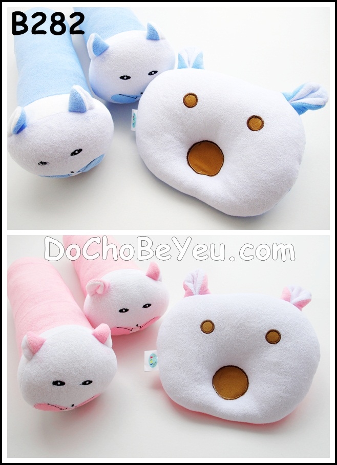 Bộ 3 gồm 1 gối lõm sơ sinh chống móp đầu bé và 2 gối ôm/ hoặc chặn.