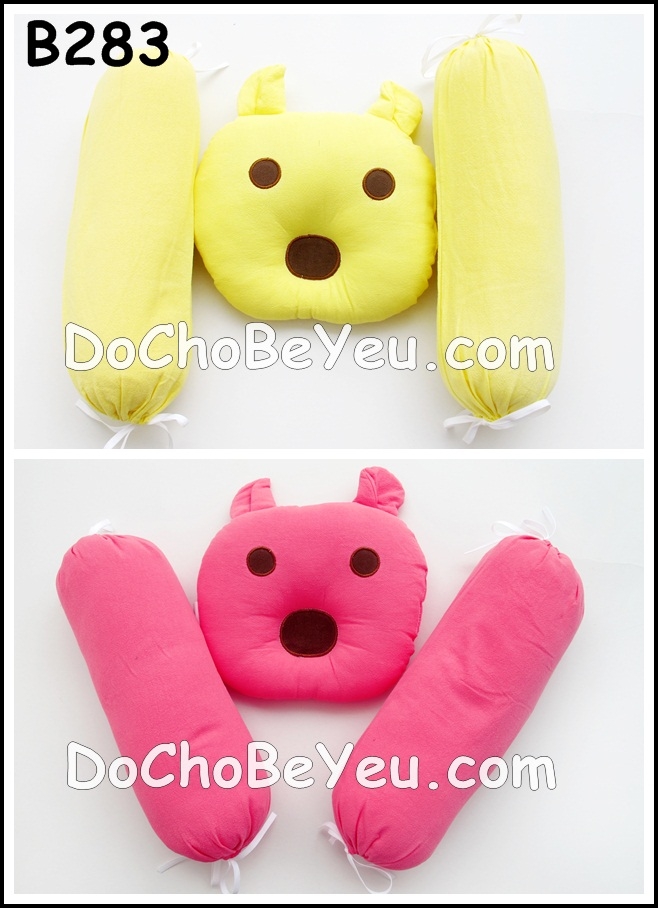Bộ mền gối sơ sinh Việt Nam gồm: 1 gối lõm sơ sinh chống móp đầu bé và 2 gối ôm/ hoặc chặn, 1 tấm trải hoặc làm mền đắp.