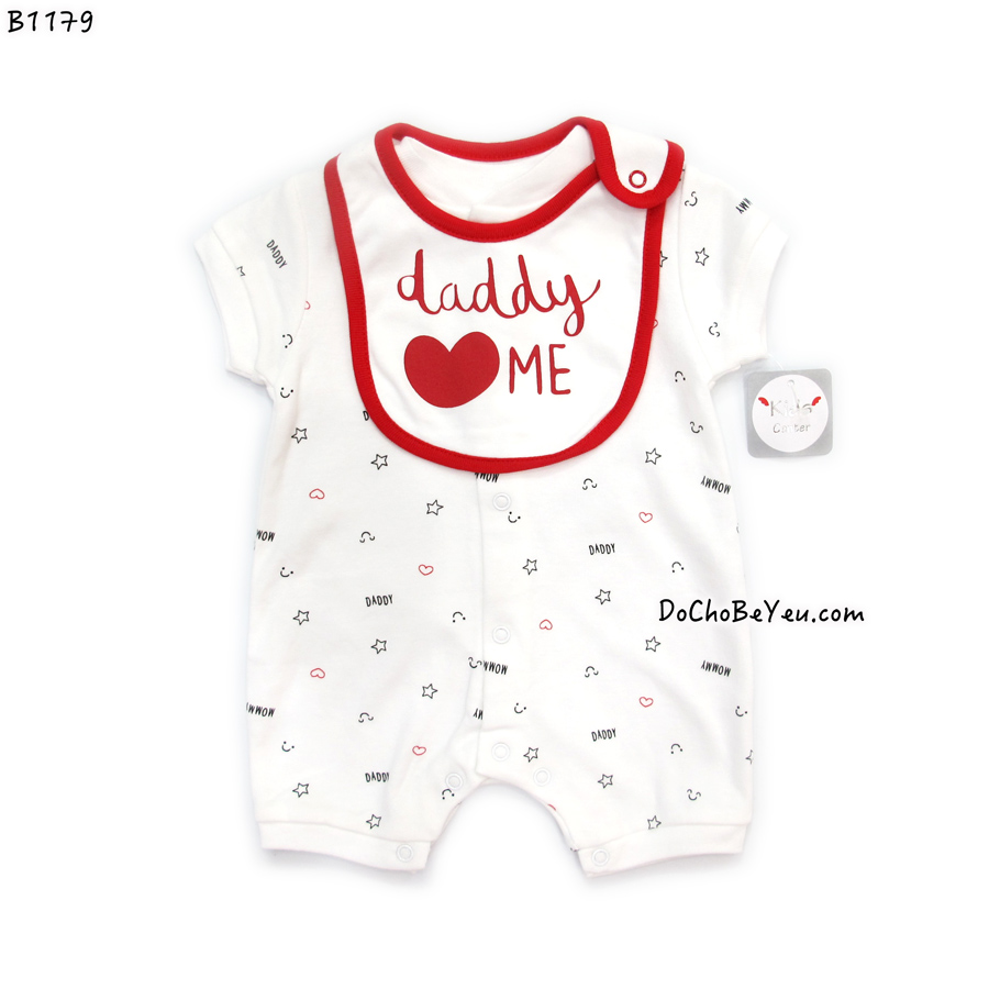 Set đồ sơ sinh xuất khẩu gồm 1 body đùi cài nút trước tiện lợi - dễ mặc và 1 yếm ấm cổ cùng tông màu với dòng chữ vô cùng đáng yêu. Hàng xuất xịn Made in Thailand 100% cotton mềm mịn, bảo đảm an toàn cho bé sơ sinh. Mẫu này bé trai hay bé gái đều mặc được cả. Giá 180k/set