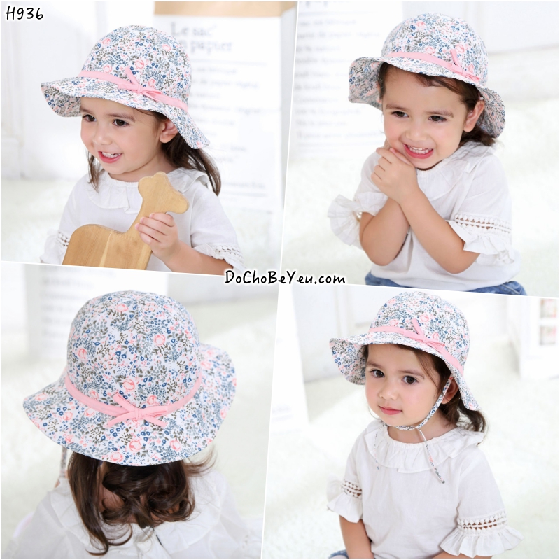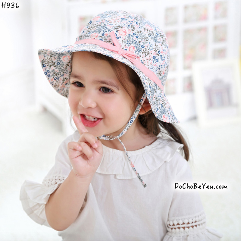 -Nón vải cho bé gái vành rộng có quai đeo không sợ gió bay, rất thích hợp cho mùa hè nắng gay gắt như thế này nha.