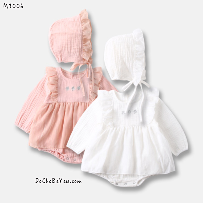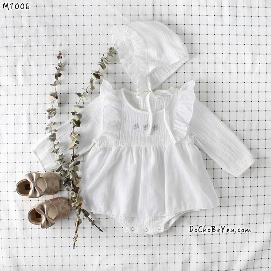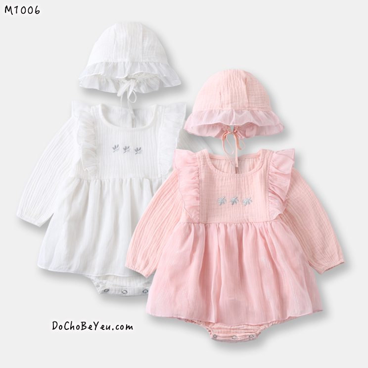 Body suit cho bé gái kèm nón mẫu mới lạ. Quá chất, quá dễ thương, điệu đà body suit kiểu thiết kế mới lạ hẳn giúp bé mình trong cực đáng iu mẹ tha hồ chụp choẹt lưu lại nhung khoảnh khắc đáng iu của bé