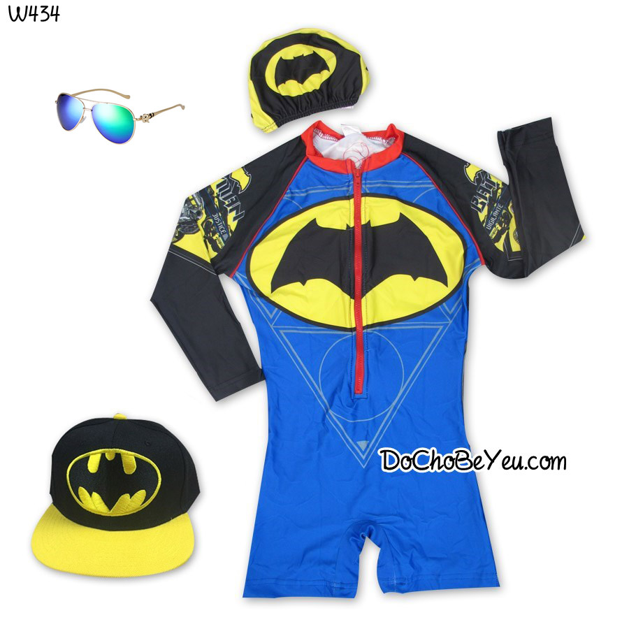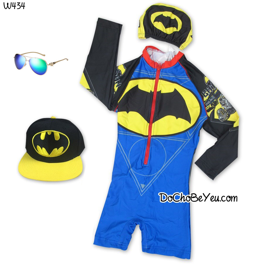 Đồ bơi Batman bé trai made in Thailand kèm nón chất dày dặn cực đẹp, mặc hoài chỉ có chật chứ không cũ luôn nha.Mẫu siêu nhân bé nào cũng thích .