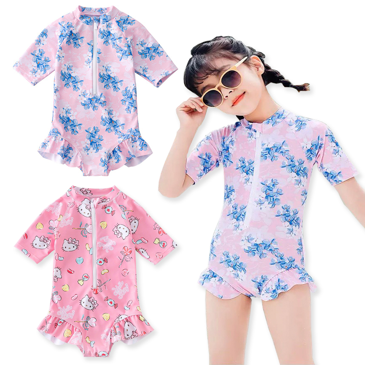 Đồ bơi cho bé gái 3-4-5-6-7-8 tuổi hình kitty xinh xắn, hay bông hoa nhí đáng yêu. Đồ bơi cho bé gái dạng liền quần kín đáo thoải mái vận động.