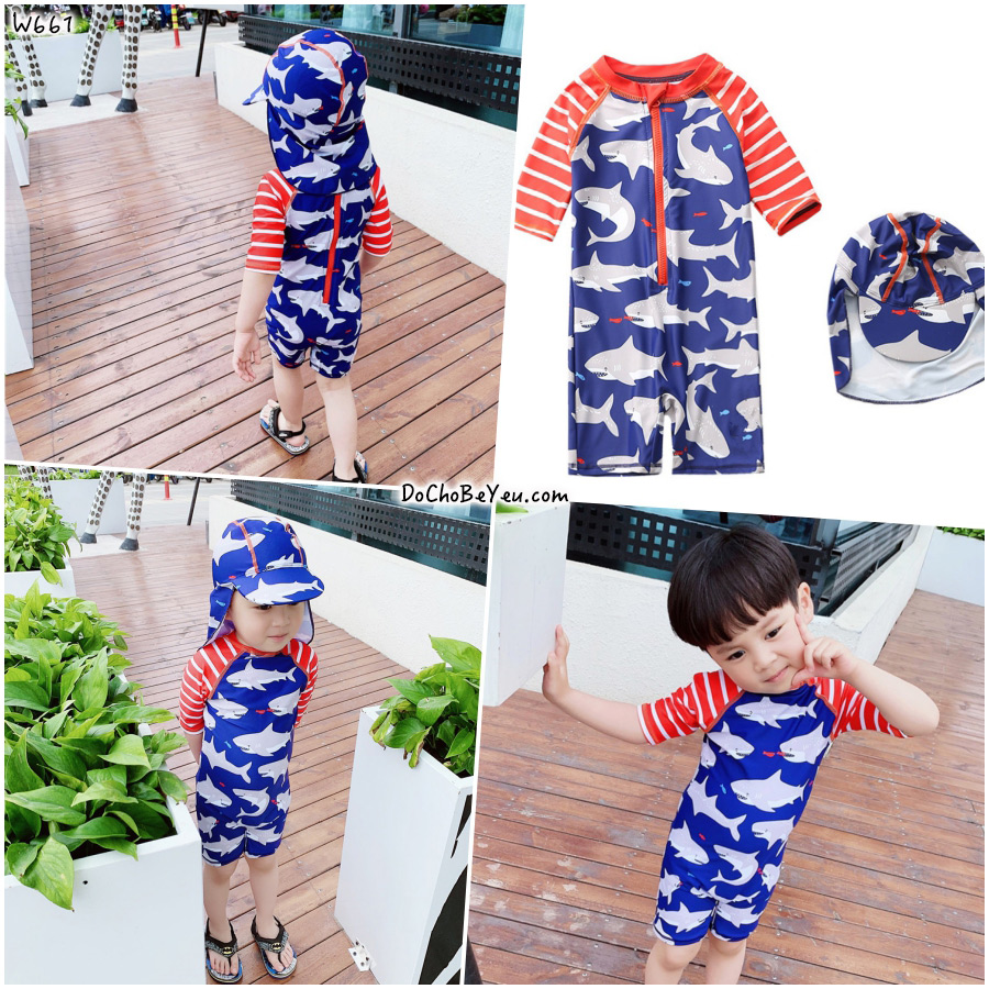 - Đồ bơi trẻ em giá rẻ TpHCM hình cá mập sinh động, dễ thương. Có kèm nón che nắng như hình. Hàng bảo đảm chất lượng từ đúng nhà máy gia công hàng xuất khẩu Korea.