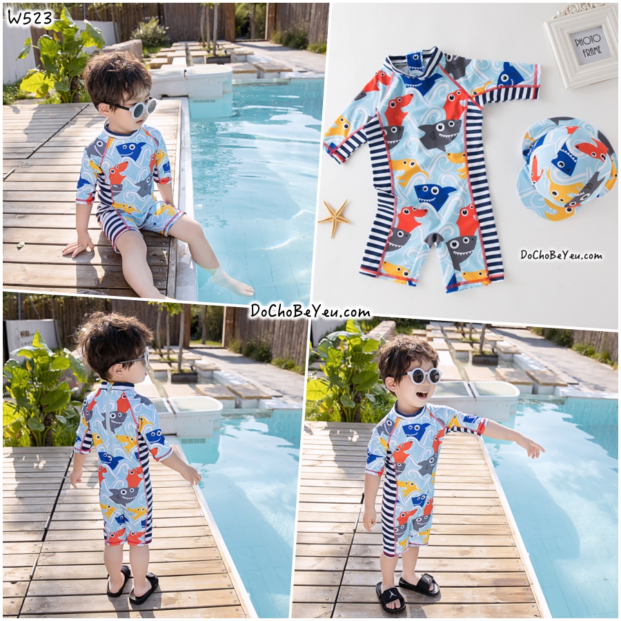 - Đồ bơi trẻ em giá rẻ TpHCM hình cá mập sinh động, dễ thương. Có kèm nón che nắng như hình. Hàng bảo đảm chất lượng từ đúng nhà máy gia công hàng xuất khẩu Korea.