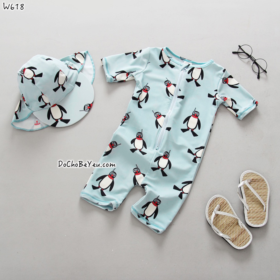 - Đồ bơi trẻ em giá rẻ TpHCM mẫu chim cánh cụt cực iu năng động, dễ thương. Có kèm nón che nắng như hình