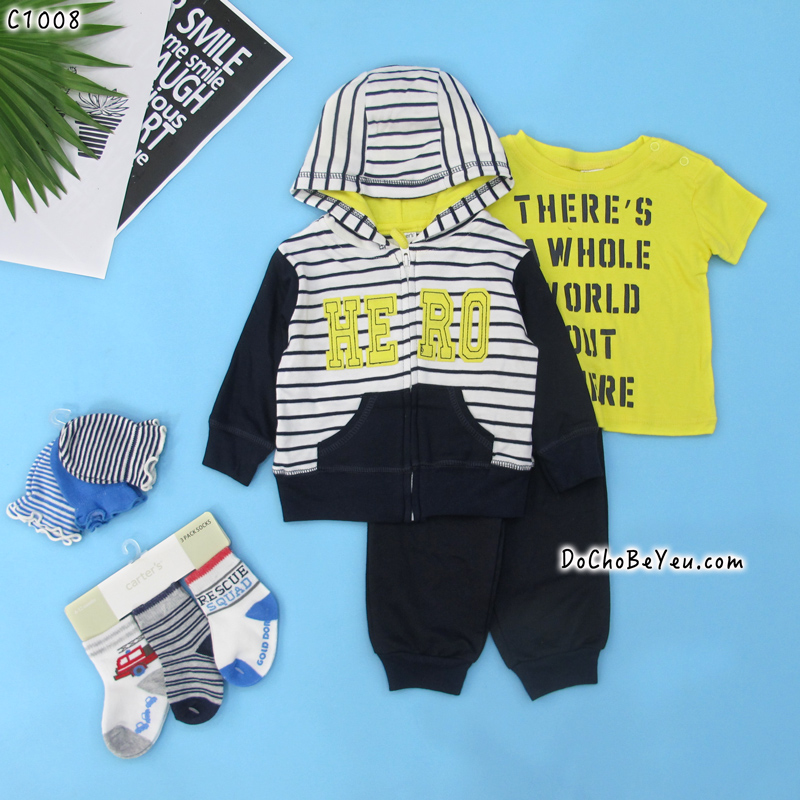 Set đồ sơ sinh Carter cho bé trai Size cho bé từ 0-12 tháng.