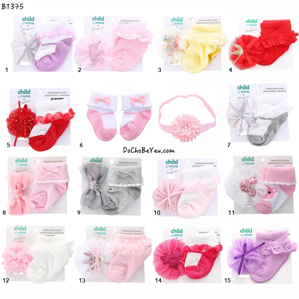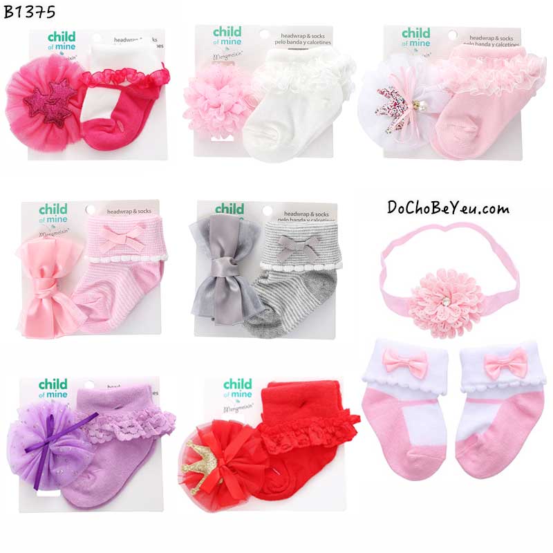 Tất vớ cho bé gái sơ sinh xuất khẩu kèm băng đô tông xuyệt tông có nhiều màu ngọt ngào - dễ thương cho mẹ tha hồ mix đồ.