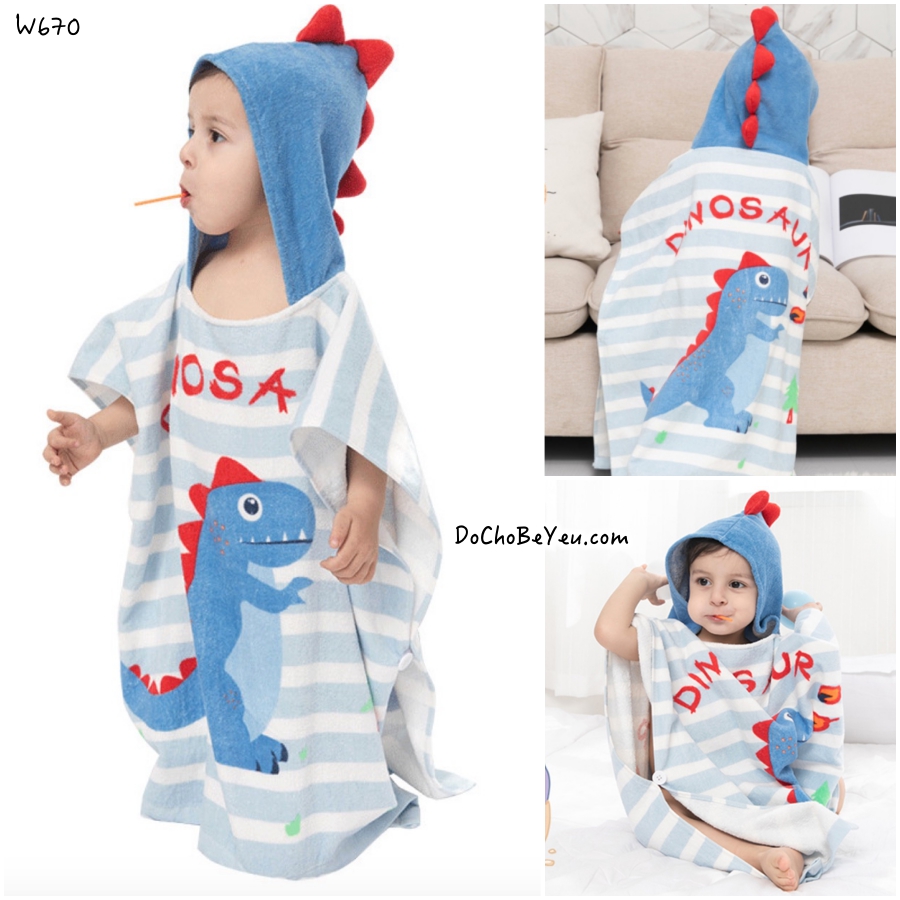 Áo choàng tắm đi bơi, đi biển cho bé hình thú 3D khủng long có vây.