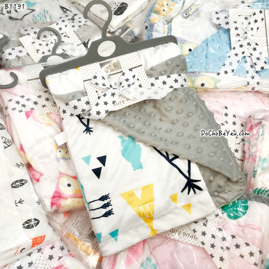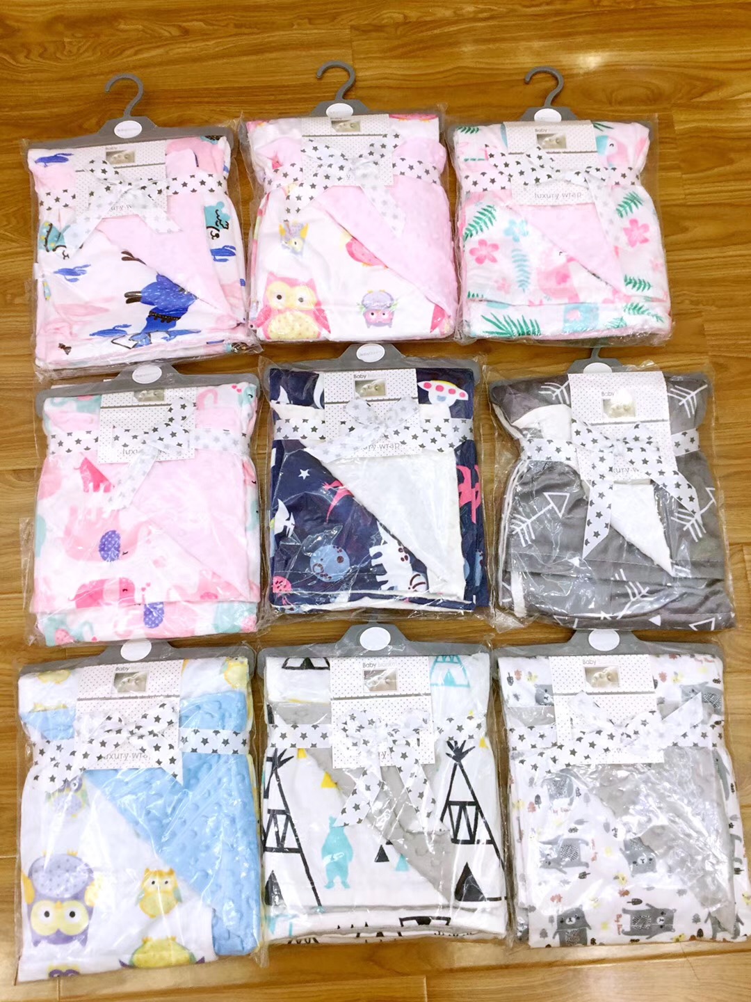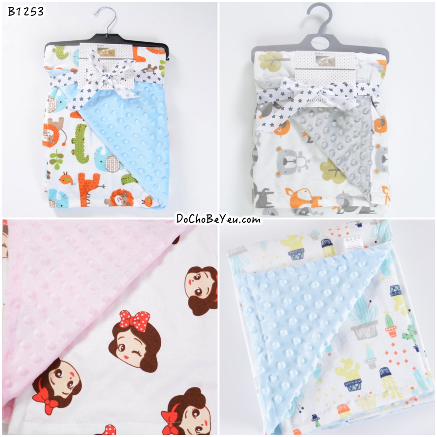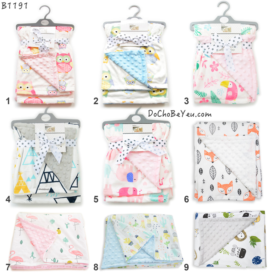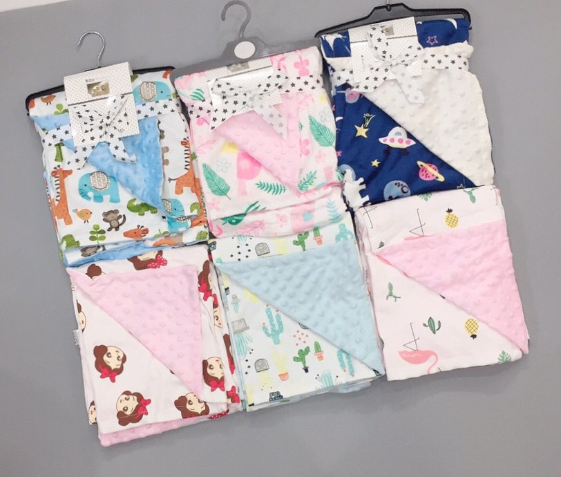 - Chăn mền cho bé sơ sinh xuất khẩu chất liệu bông cotton - không hề nóng nha bố mẹ, ngược lại vô cùng mềm mượt, rờ mát tay, không bong xù lông. Thiết kế thông minh một mặt trơn hạt nổi, tạo chỗ lồi lõm để thông thoáng khí. Hàng xuất khẩu chất lượng, có cái còn móc + mạc, có cái không còn nha các chị.