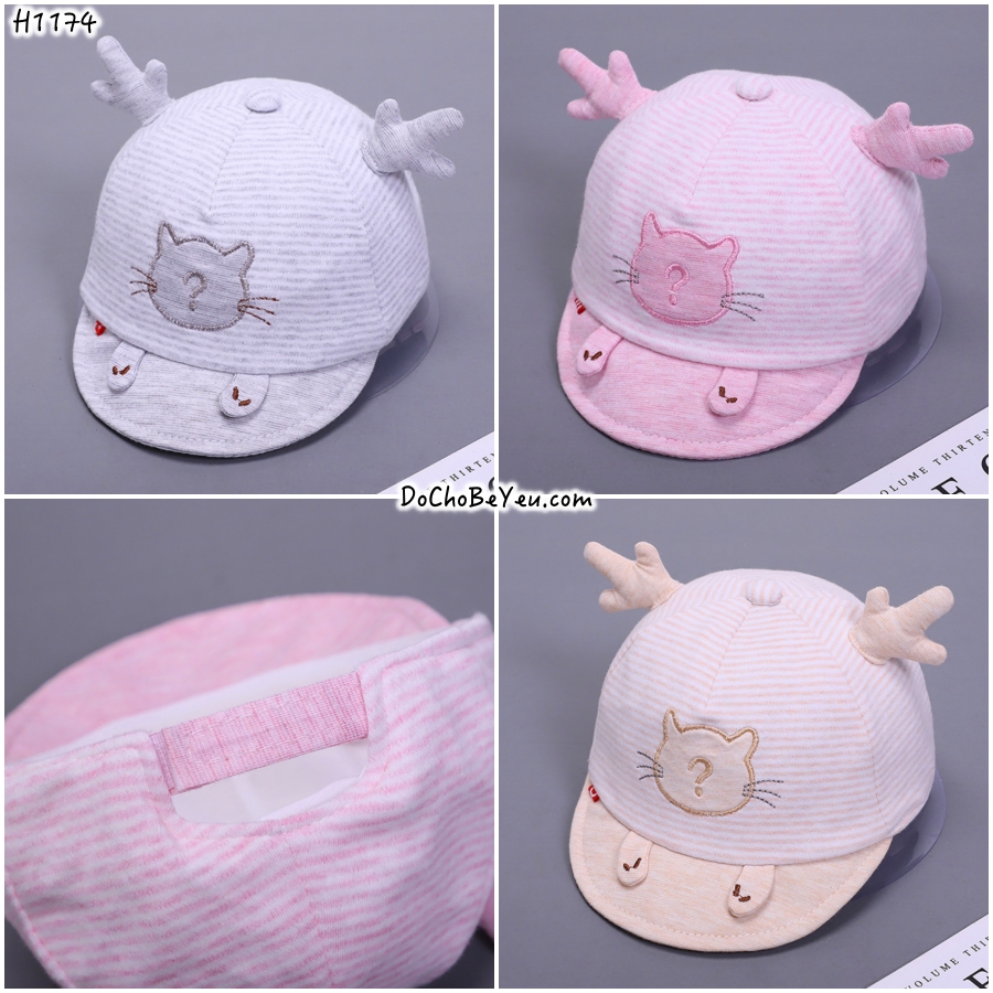 - Nón trẻ em vành mềm có tăng đơ phía sau với 3 màu nhẹ nhàng, tươi sáng: Hồng -vàng-xám nhạt..