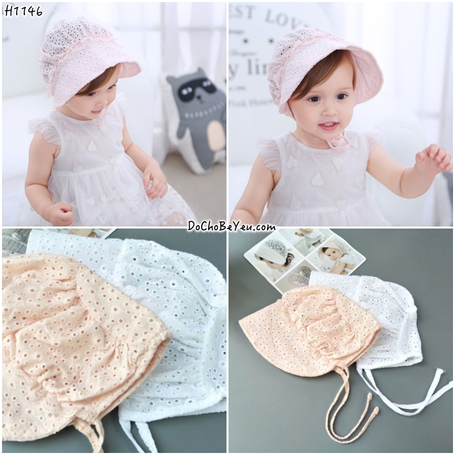 -Nón vải cho bé gái vành rộng có quai đeo không sợ gió bay, rất thích hợp cho mùa hè nắng gay gắt như thế này nha.Nón có 2 màu cho mẹ lựa chọn Trắng -Hồng.