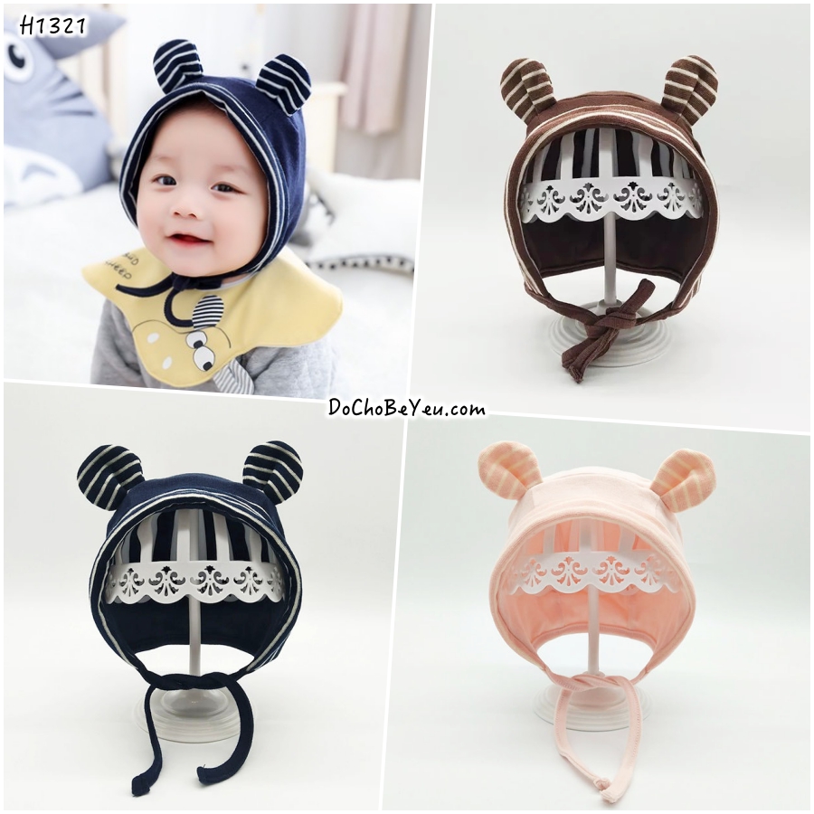 Mũ nón cotton cho trẻ sơ sinh kiểu xinh yêu vô cùng. Kiểu nón này được ưng nhất ở chỗ là bé nào đội vào khuôn mặt cũng trông bầu bĩnh rất đáng iu, bố mẹ tha hồ chụp choẹt lưu lại khoảnh khắc trẻ thơ cho các con.Có dây cột mẹ khỏ sợ bay, tuy mũ chùm hết cả phần sau ót giữ ấm cho bé, nhưng không hề nóng chút nào bởi chất liệu 100% cotton mềm mỏng, thấm hút mồ hôi.