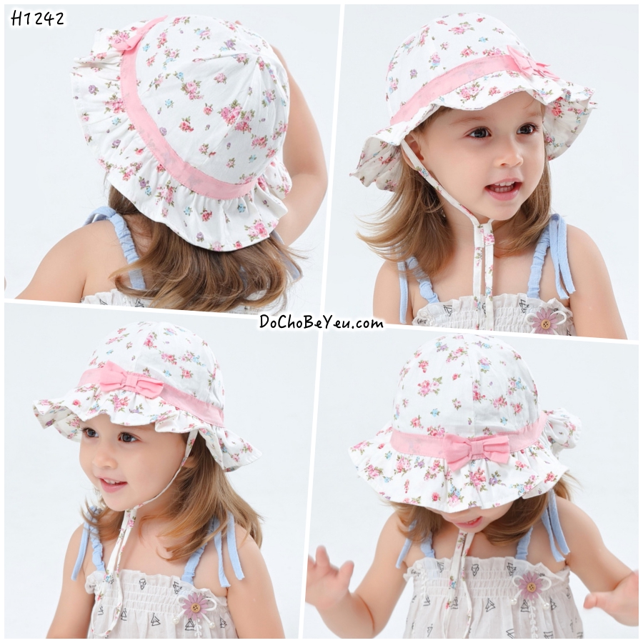 - Nón vành cho bé gái 5-6 tháng đến 3 tuổi đội vào trông rất đáng iu, lại có vành che và bảo vệ bé dưới trời nắng.