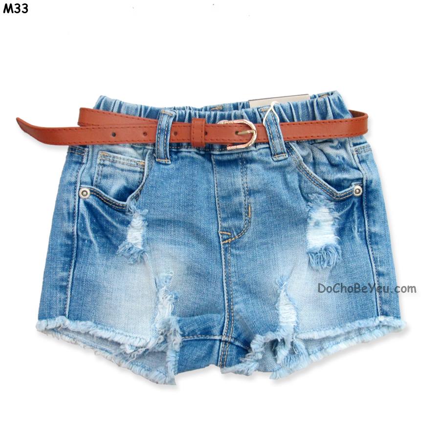 Quần short jean bé gái lưng thun kèm nịt cực sành điệu và cá tính.
