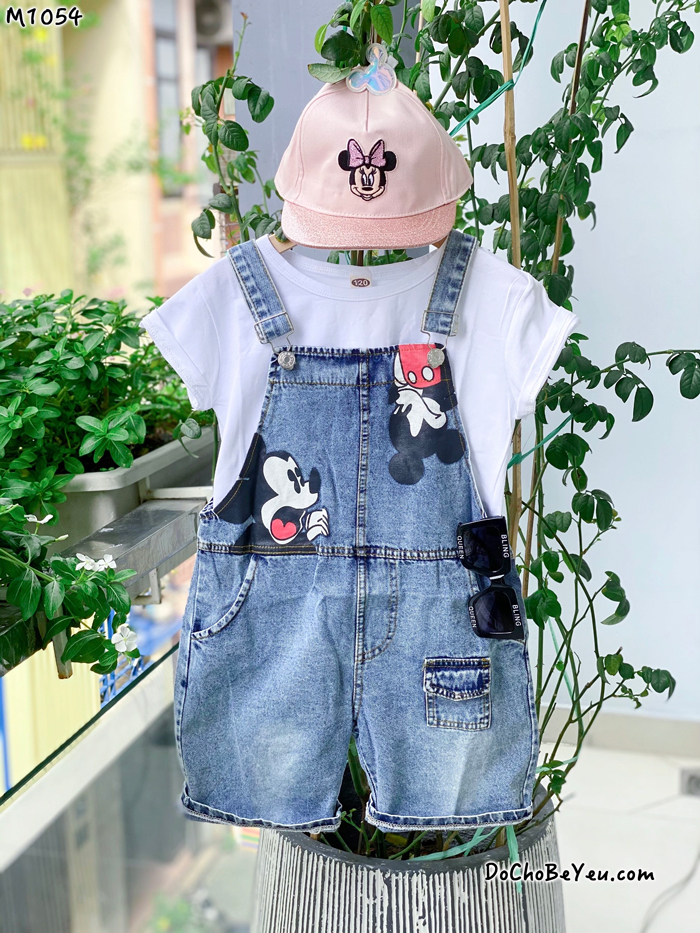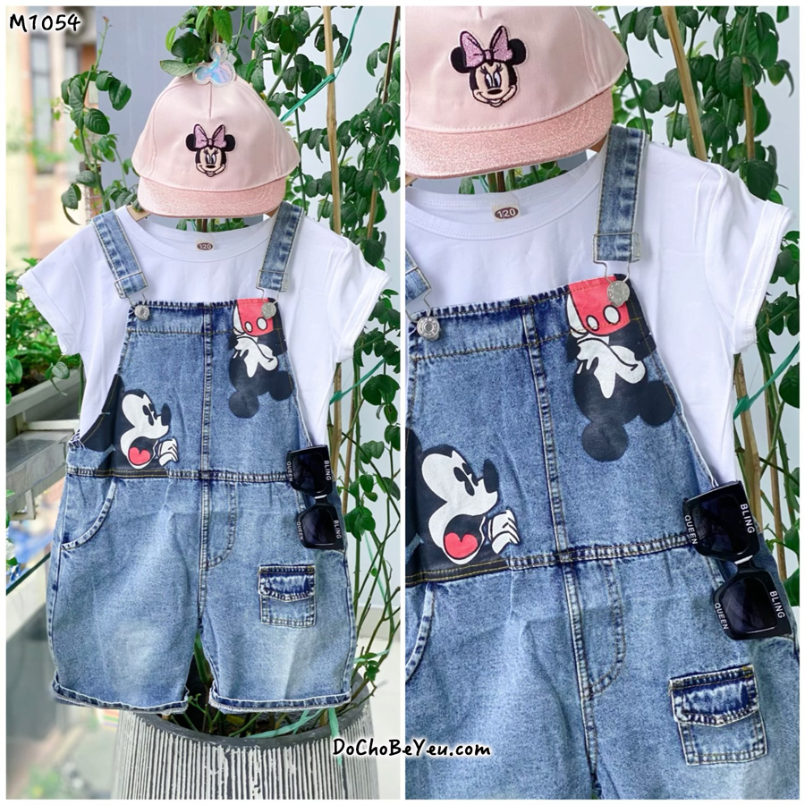Set gồm quần yếm jean mickey dễ thương và 1 áo thun cotton giá chỉ 210k/set.