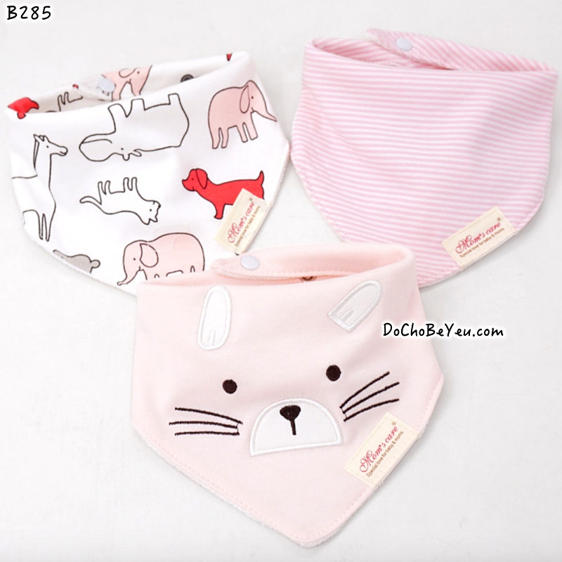 - Set 3 khăn ấm cổ Mom's Care Vừa rất đẹp, thời trang, vừa ấm cổ, lại rất tiện lợi có thể dùng lau luôn khi bé ăn hoặc bú. Chất 100% cotton thấm hút, có nhiều màu sắc, hoa văn dễ thương tha hồ cho mẹ phối đồ. Giá 85k/set 3 khăn tam giác ấm cổ bé. có nút bấm phía sau.