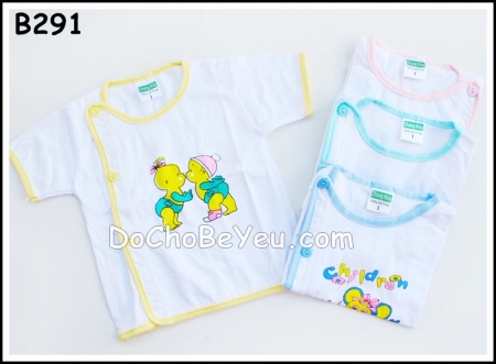 Có nhiều hình in trên áo khác nhau. Viền nhiều màu khác nhau. Ngoài ra còn có áo sơ sinh cài xéo, áo sơ sinh chấm bi...
