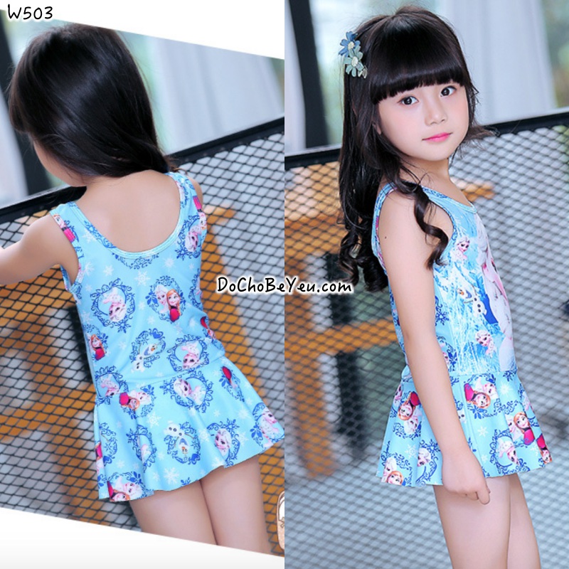 - Áo bơi trẻ em hình Frozen các bé yêu thích với màu xanh mát mẻ mà tươi tắn, xua tan cái nóng của mùa hè.