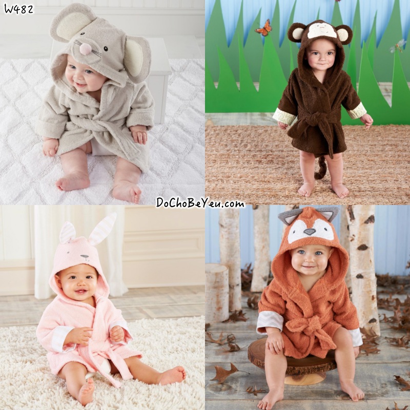 - Khăn choàng tắm cho bé dạng áo có dây cột dễ mặc, tiện lợi. Chất liệu bông 100% cotton dày dặn, thấm hút.