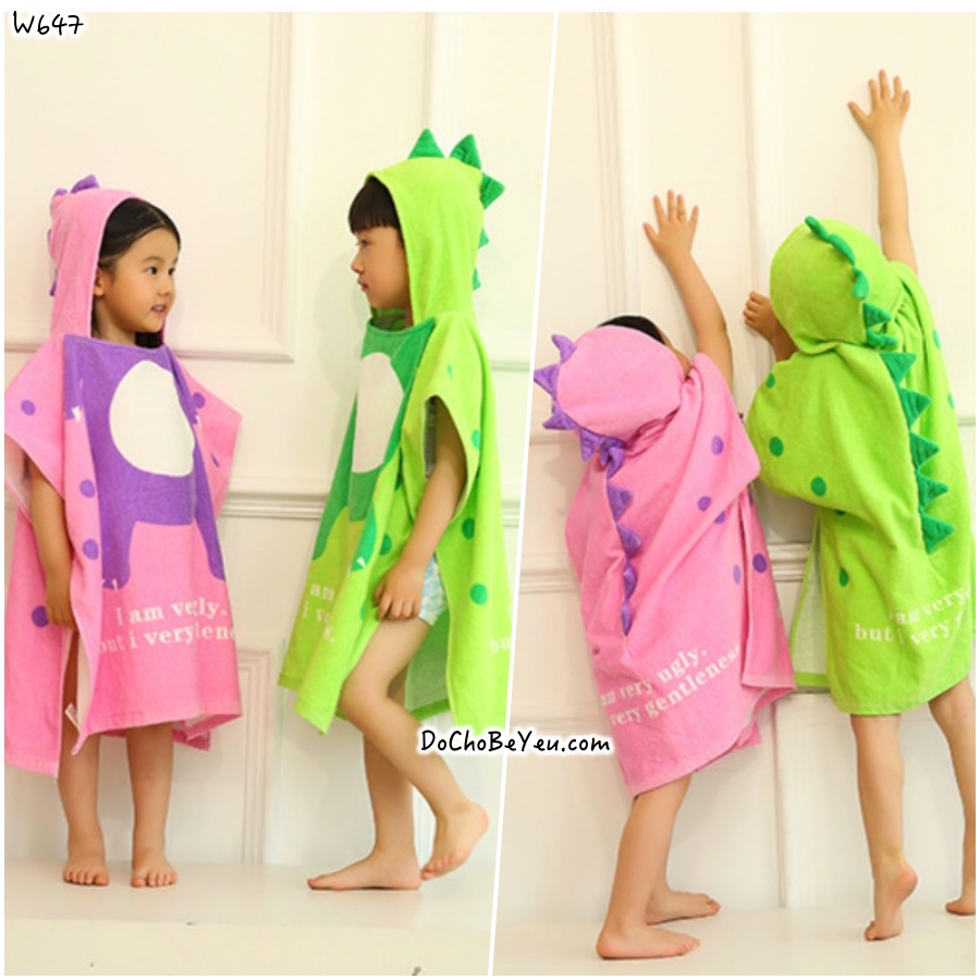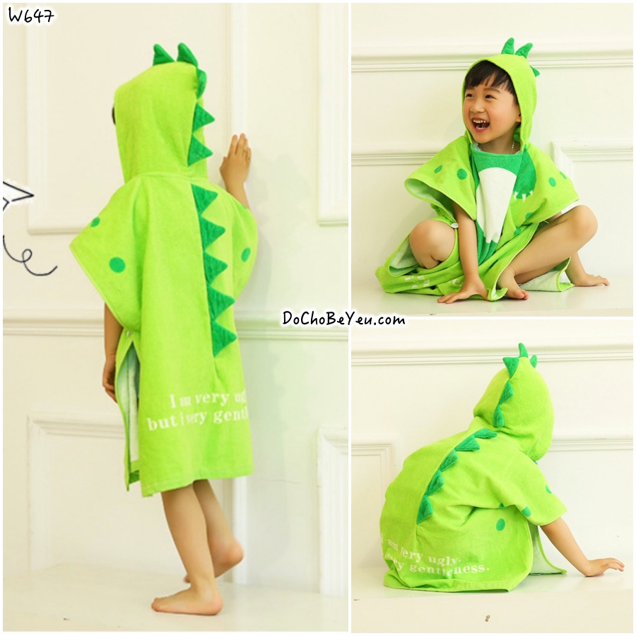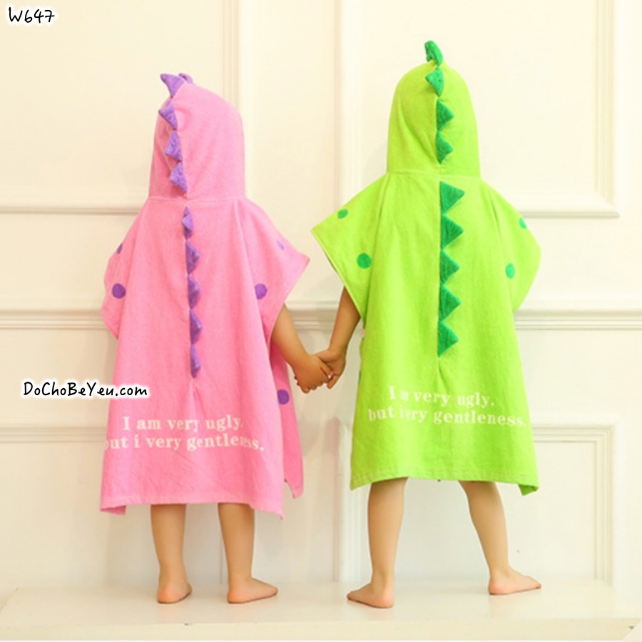 Áo choàng tắm - Khăn choàng tắm cho bé hình thú mẫu khủng long 3D có vây phía sau sinh động, dễ thương. Có 3 màu: hồng, vàng, xanh lá.