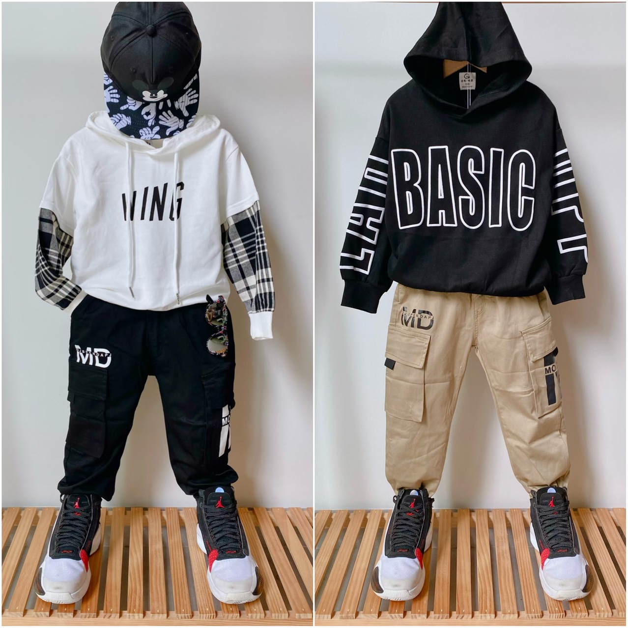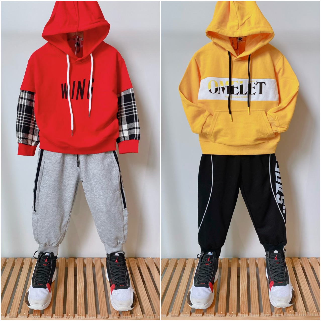 Áo hoodie cho bé trai 2-6 tuổi kết hợp với quần jogger và giày thể thao siêu ngầu, chất lừ khỏi chê luôn.