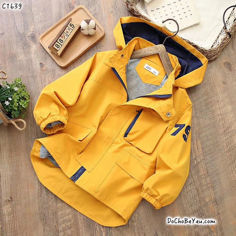 Áo khoác trẻ em size đại form dáng mặc lên cực chất. Lớp áo dù bên ngoài đi mưa hay nắng đều được.