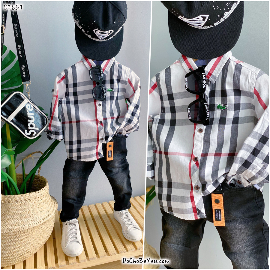 Áo sơ mi cho bé trai chất vải mềm mát, thoải mái cho bé. Mẫu caro burberry điển trai, có thể phối cùng áo len, quần kaki hay quần jean đều được.