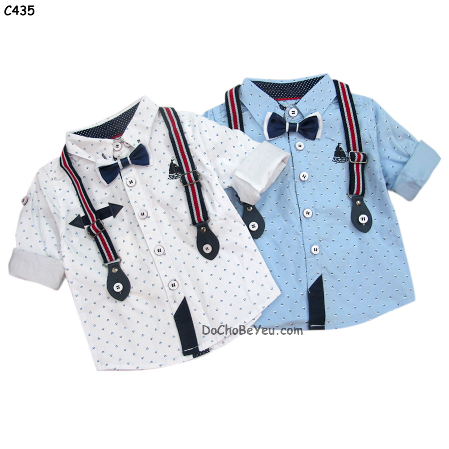 Sơ mi bé trai mẫu thiết kế mới lạ có đính kèm dây đeo và nơ sang trọng thích hợp cho bé đi tiệc đi chơi với chất vải đẹp thấm hút mồ hôi tốt có nhiều màu khác nhau cho mẹ lựa chọn trong bé nhà mình thật đáng iu và phong cách mẹ nhé chỉ với 160k