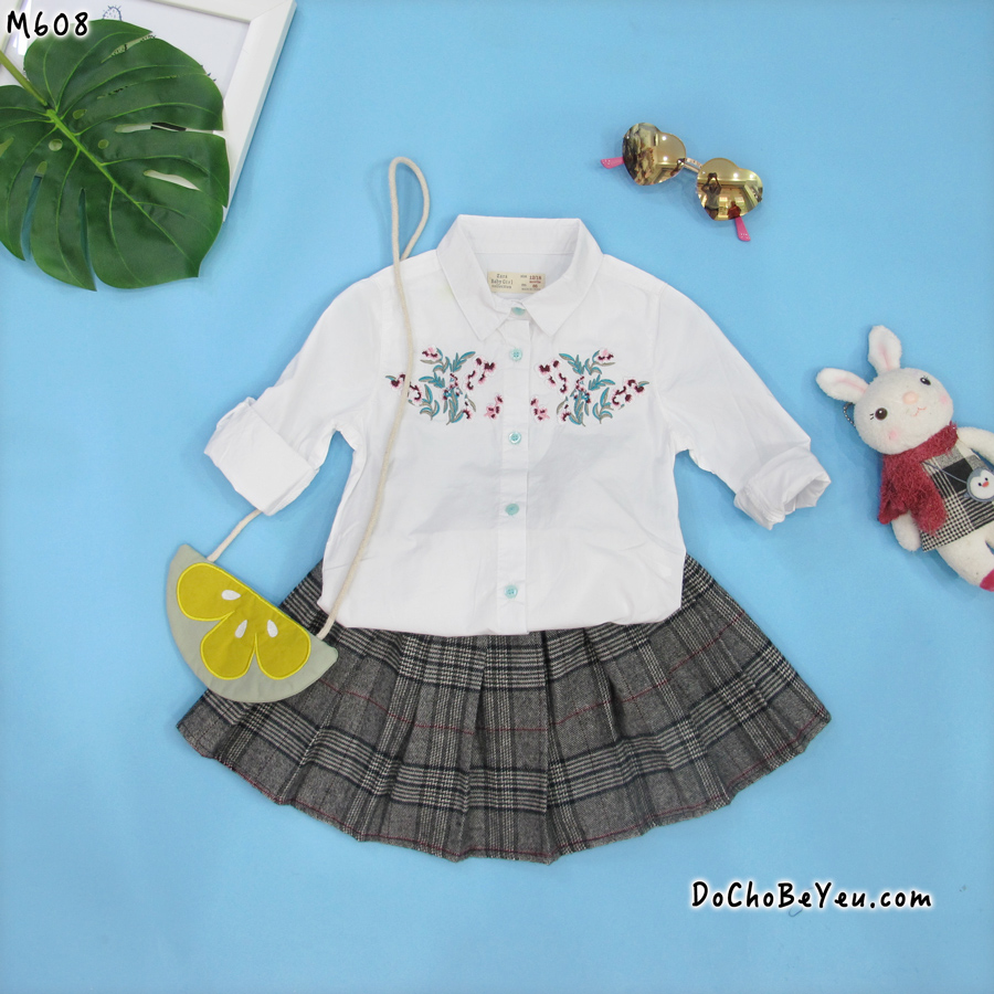 - Áo sơ mi cho bé gái 2-6 tuổi hình thêu. Chất vải sơ mi mềm nhưng không quá rũ.Mẹ dễ dàng phối cùng mọi loại quần chân váy cho bé điều hợp .