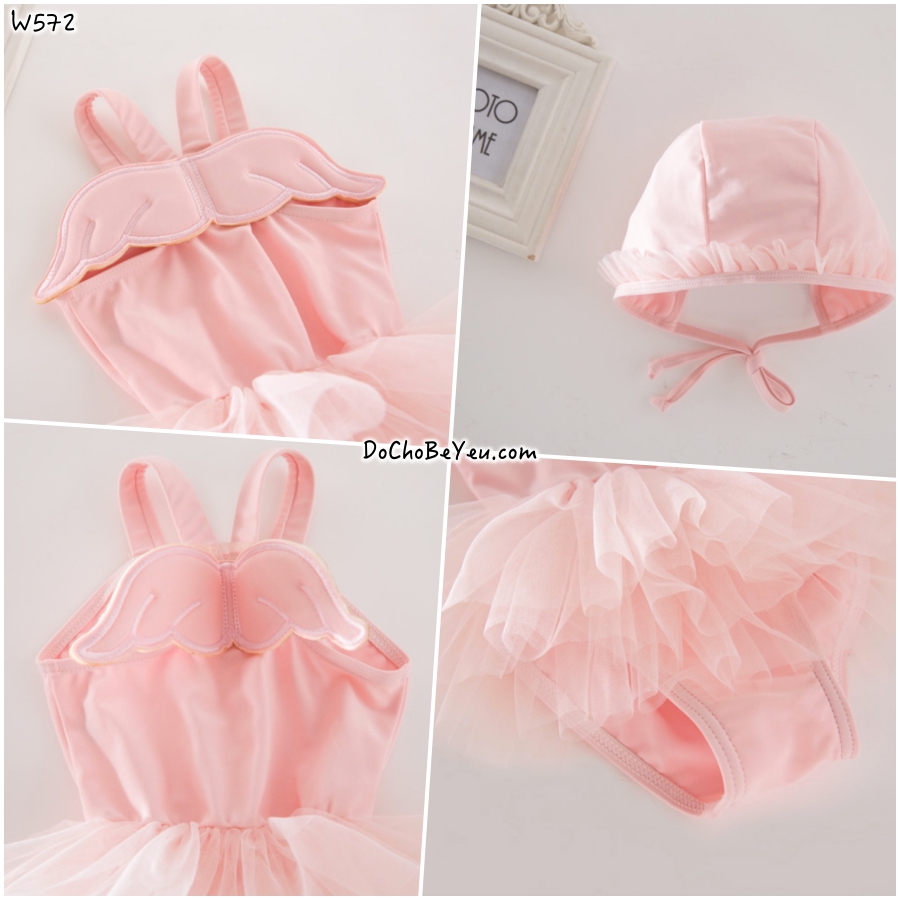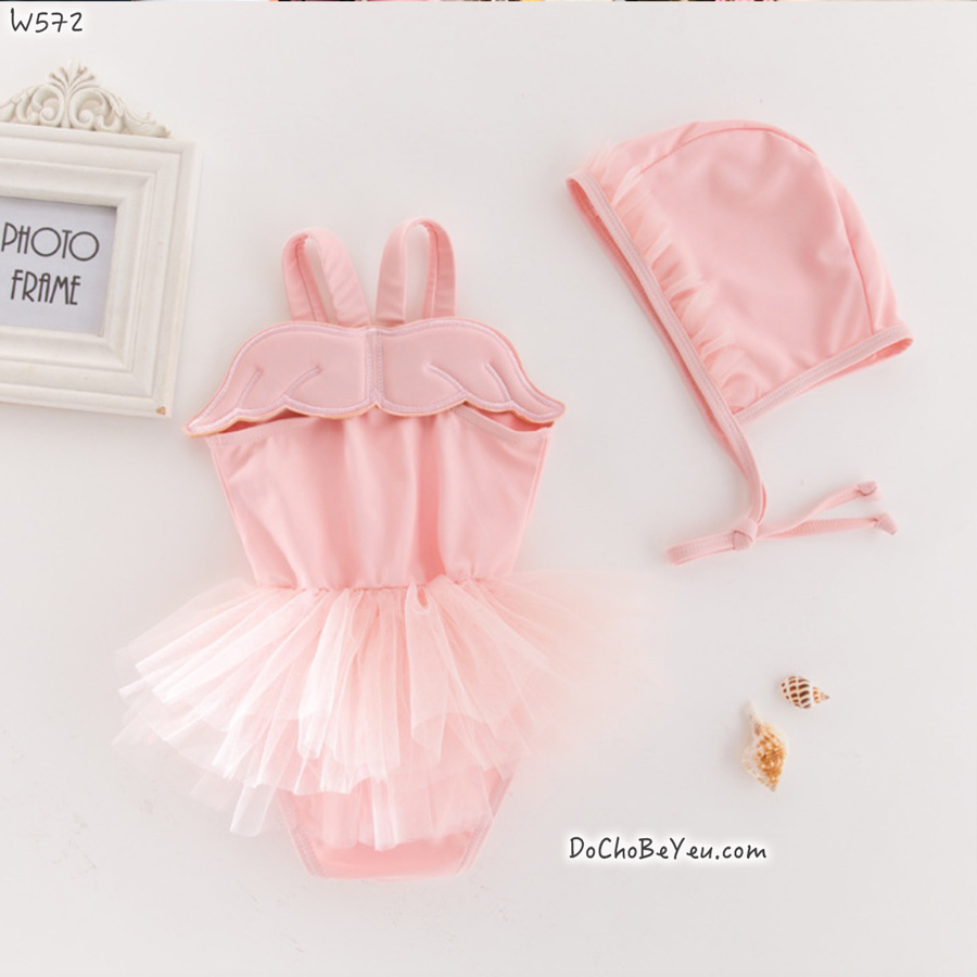 - Đồ bơi cho bé gái mẫu thiết kế mơi lạ bé mặc lên rất dễ thương, đáng iu, chụp hình là khỏi chê nha.Bơi liền kèm nón, size cho bé 6 tháng-3 tuổi.