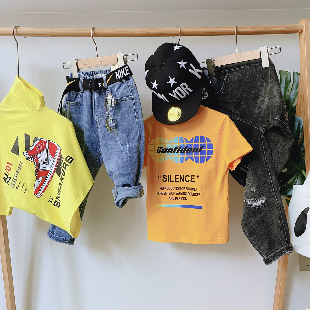 Áo thun cho bé trai tay ngắn năng động, màu sắc tươi tắn, dễ dàng kết hợp với các loại quần khác nhau.