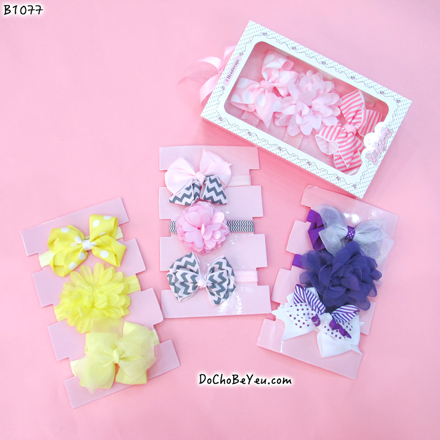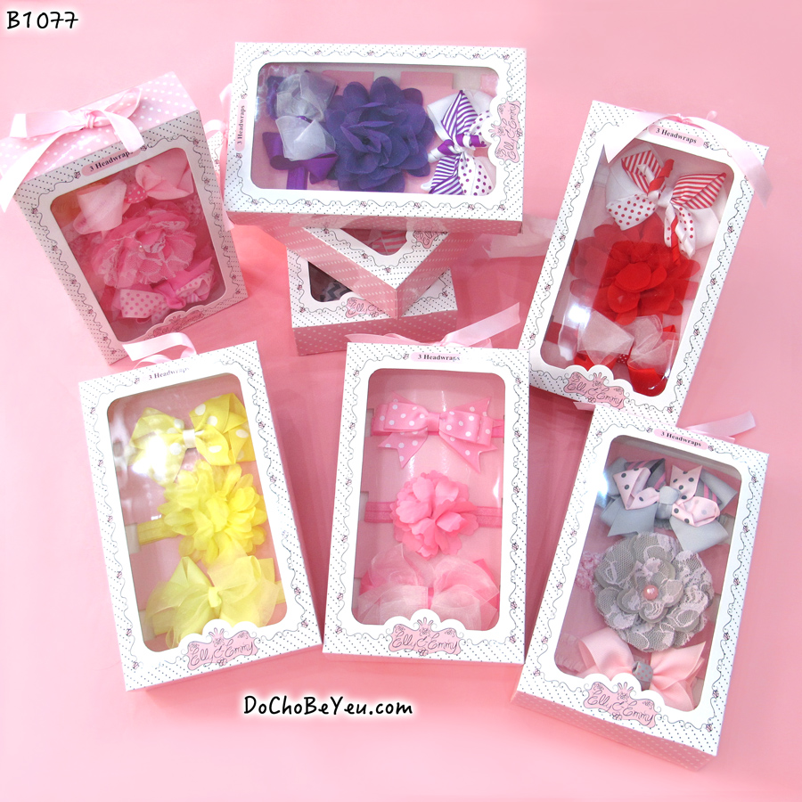 - Set gồm 3 mẫu băng đô cho bé gái màu sắc khác nhau cho mẹ dễ dàng phối cùng nhiều mẫu quần áo chỉ với 70k kèm luôn cả hộp làm quà tặng cực sang luôn mẹ nhé.