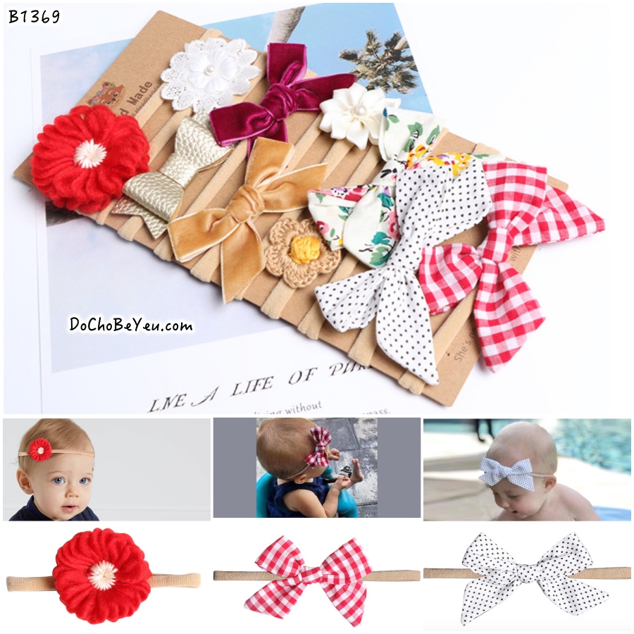 Set băng đô cho bé gái sơ sinh ở TPHCM giá chỉ 120k/set tới tận 10 cái đủ kiểu bông hoa & nơ màu sắc khác nhau tha hồ cho mẹ mix đồ. Style đơn giản, kiểu dáng nhỏ nhắn, không loè loẹt mà rất tây.