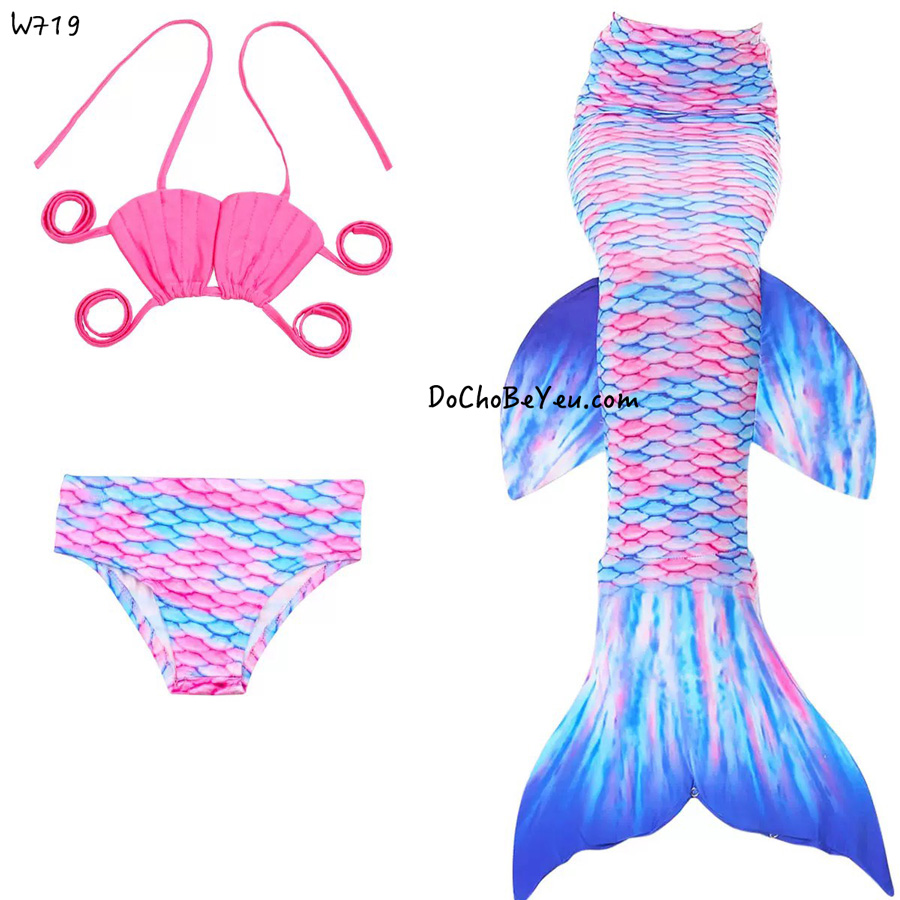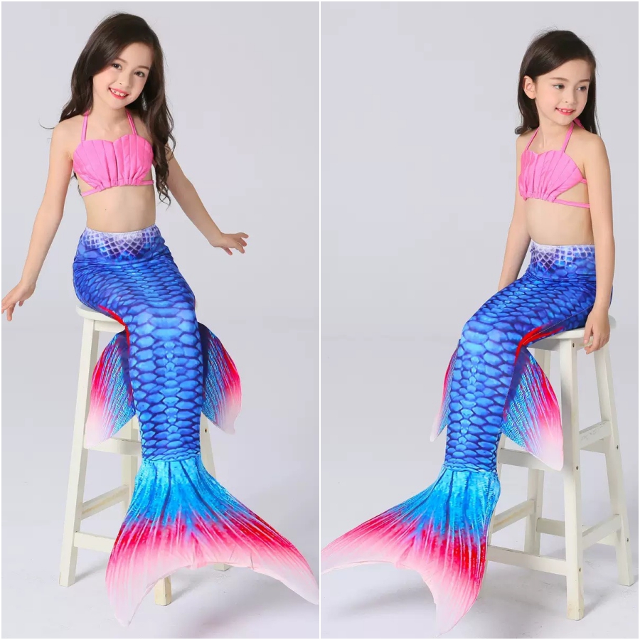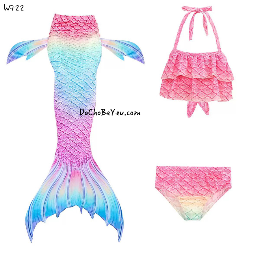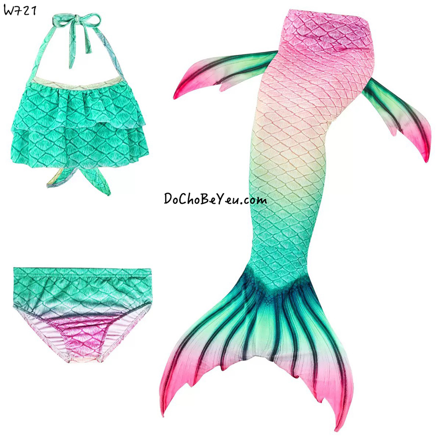 Bikini cho bé gái nàng tiên cá set 3 món gồm 1 bộ áo + quần bikini trẻ em gái + 1 chiếc đuôi cá.
