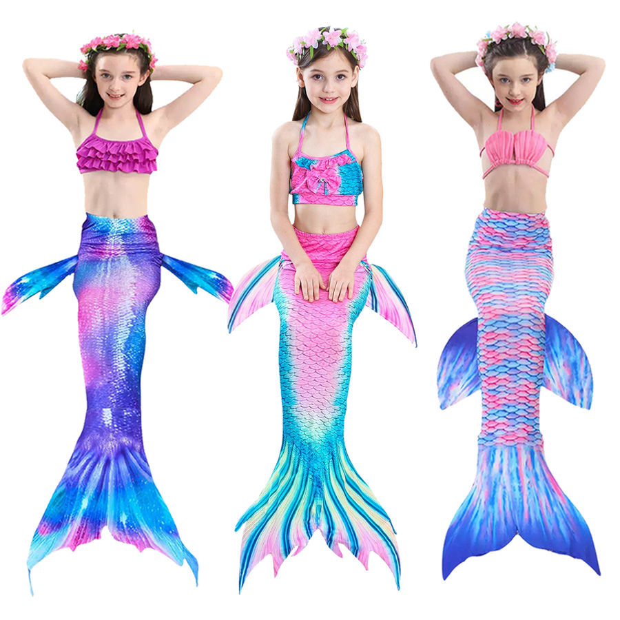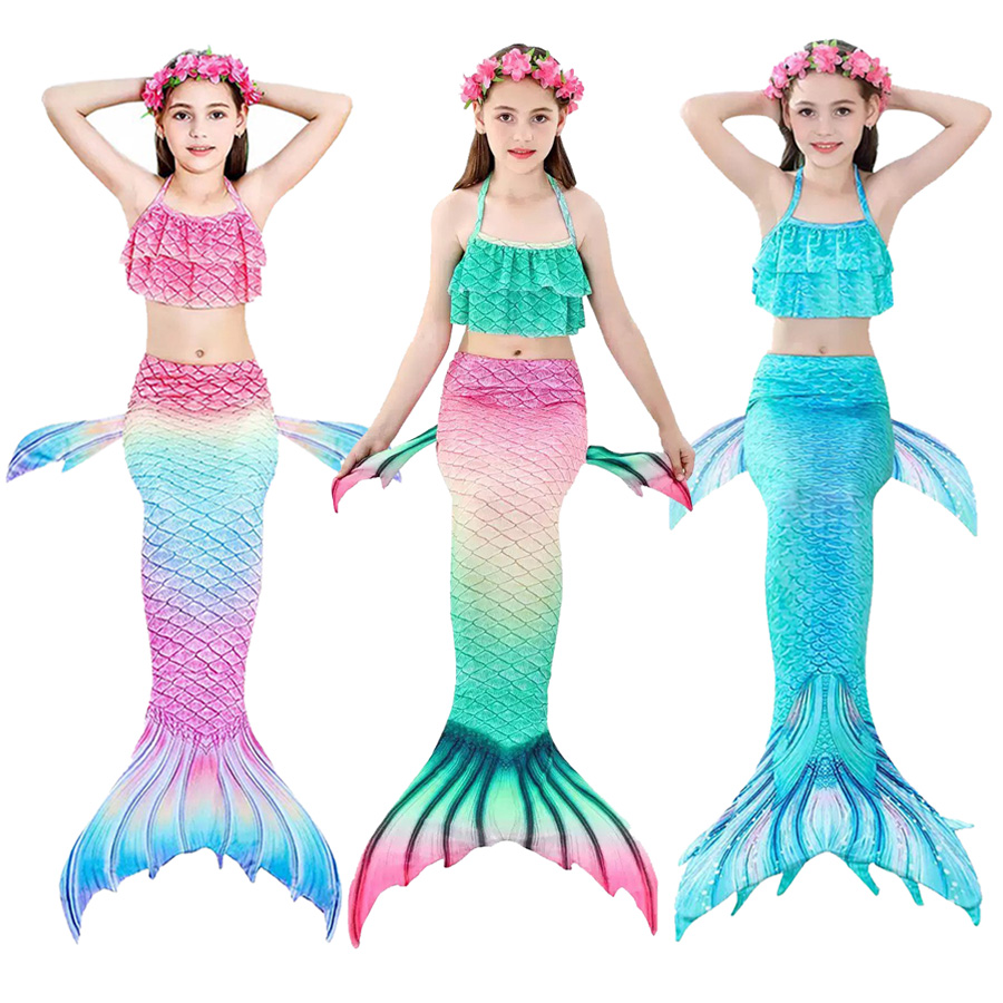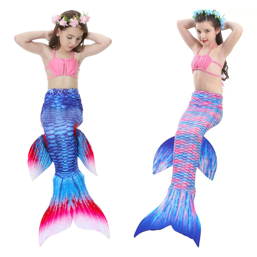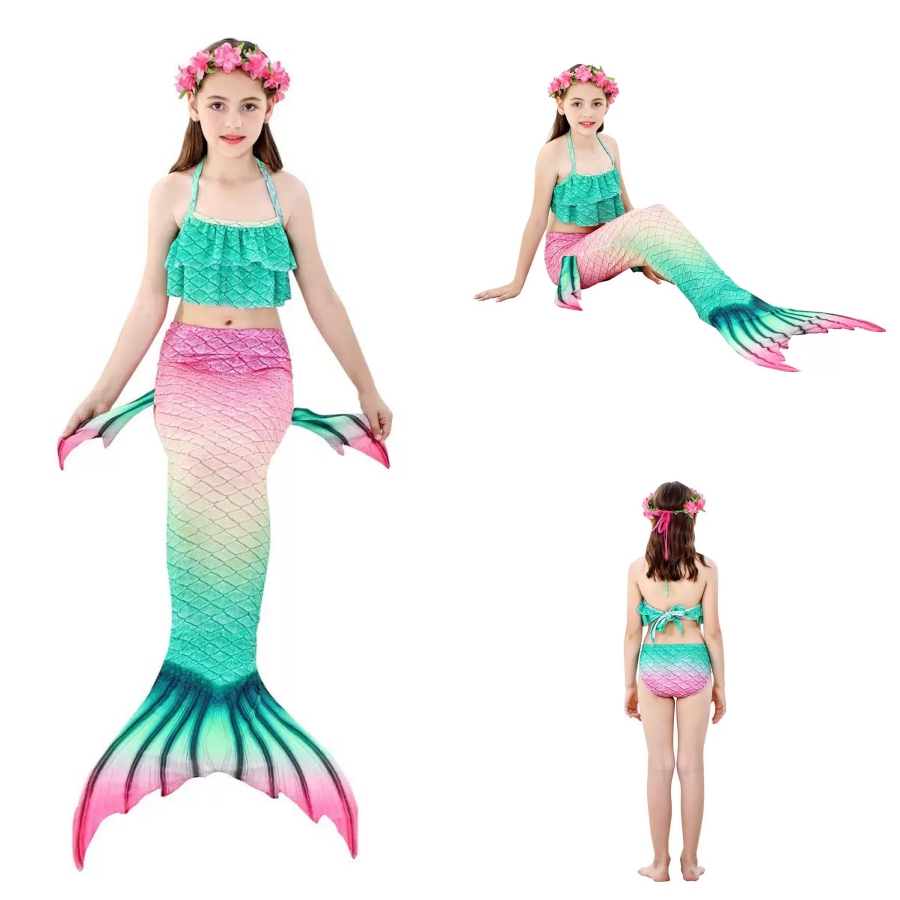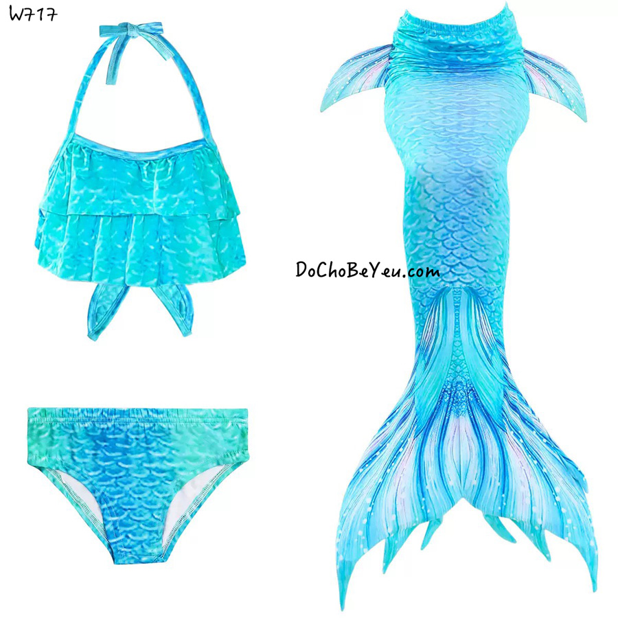 Bikini cho bé gái nàng tiên cá set 3 món gồm 1 bộ áo + quần bikini trẻ em gái + 1 chiếc đuôi cá.