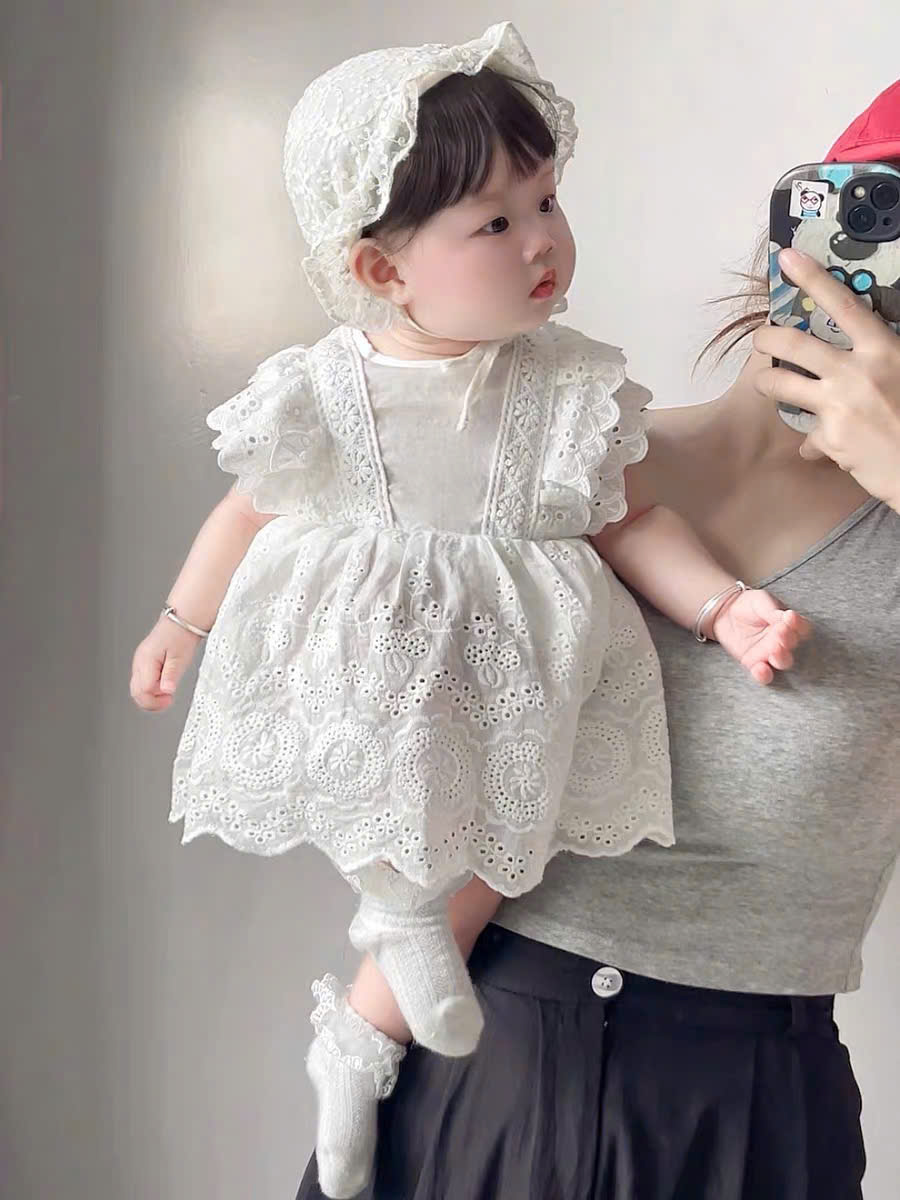 Body cho bé gái sơ sinh màu trắng mặc đầy tháng thôi nôi – DoChoBeYeu.com