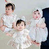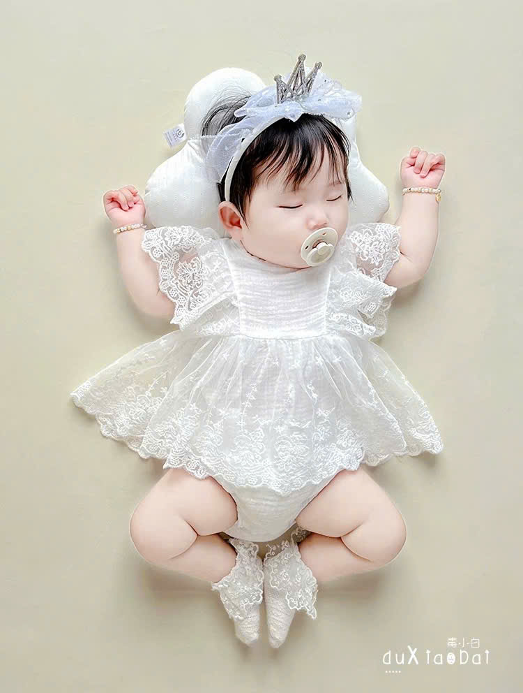 Body cho bé gái sơ sinh màu trắng mặc đầy tháng thôi nôi