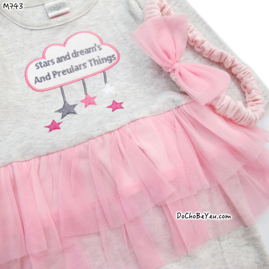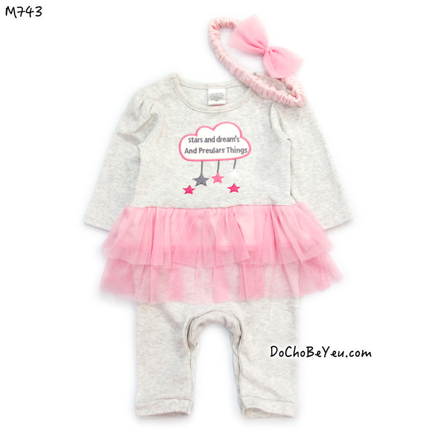 Body dài cho bé gái sơ sinh kèm băng đô kèm móc sang xịn.