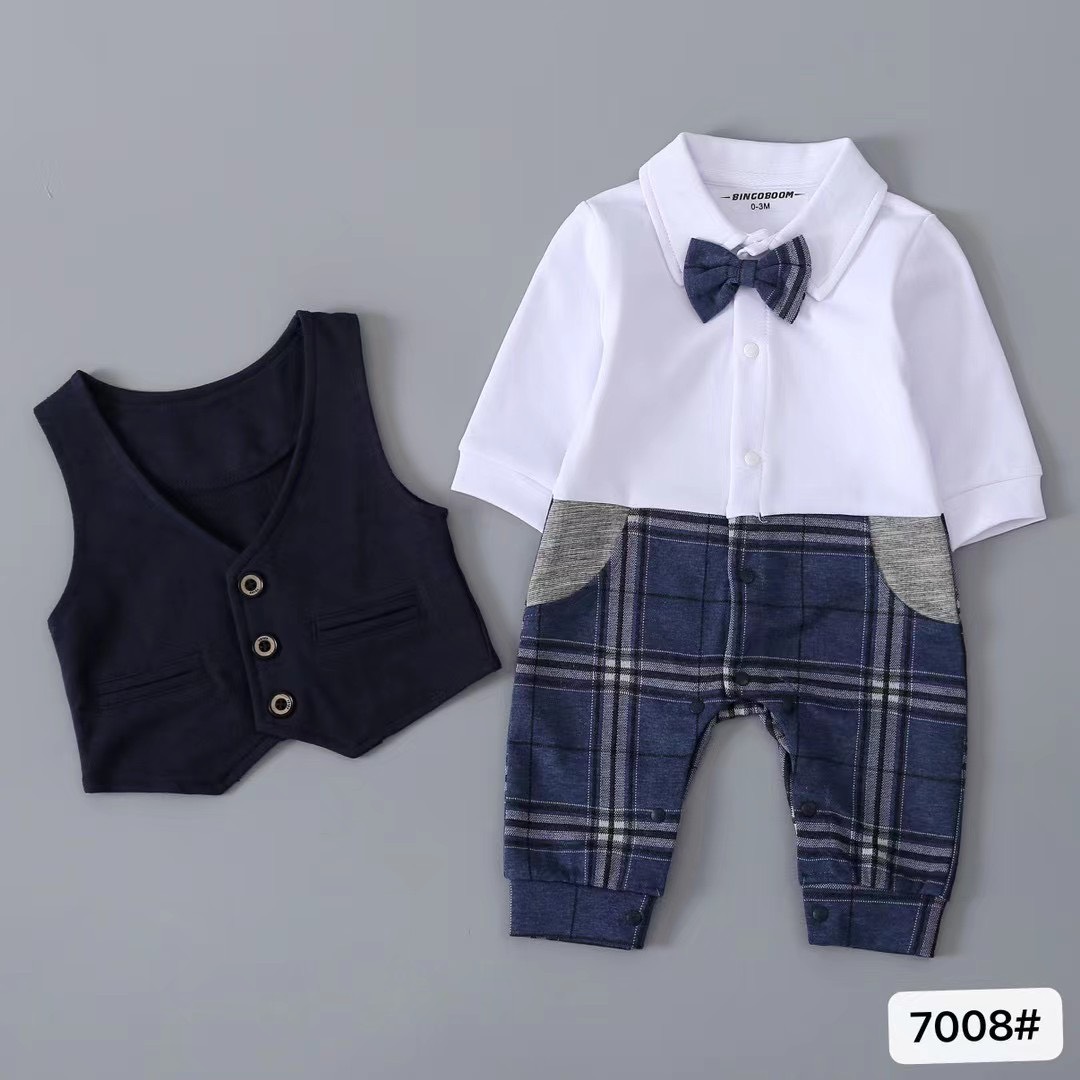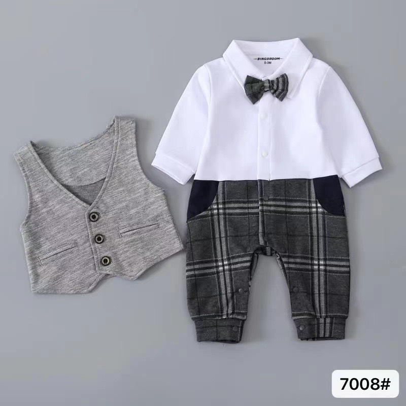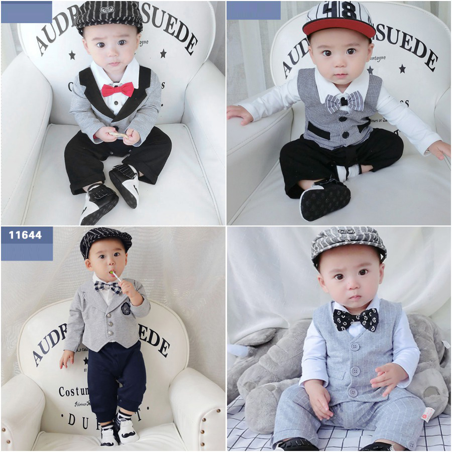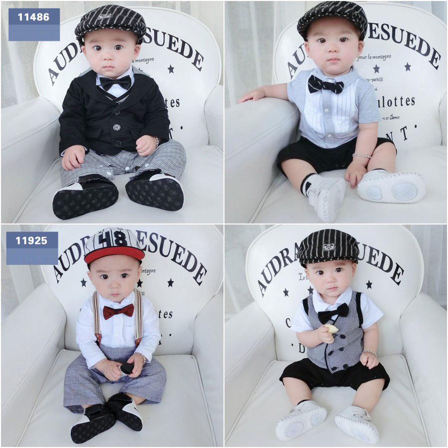 Đồ cho bé trai sơ sinh đầy tháng, thôi nôi từ 0-3 tháng đến 18-24 tháng,mẫu thiết kế giả vest gile kèm cavat (hoặc nơ đeo cổ) cực điển trai, dễ thương, mặc thôi nôi, đầy tháng, đi tiệc hay đi chơi rất phong cách. Cực kỳ dễ mặc, tiện lợi, mẹ không cần phải lách cách áo sơ mi , quần short, rồi dây đeo riêng, nơ riêng. Tất cả đều trong 1 sản phẩm mà chất vải vô cùng mềm mại, mỏng thoáng, phù hợp cho trẻ nhỏ, chứ không nặng nề như những bộ vest khác.