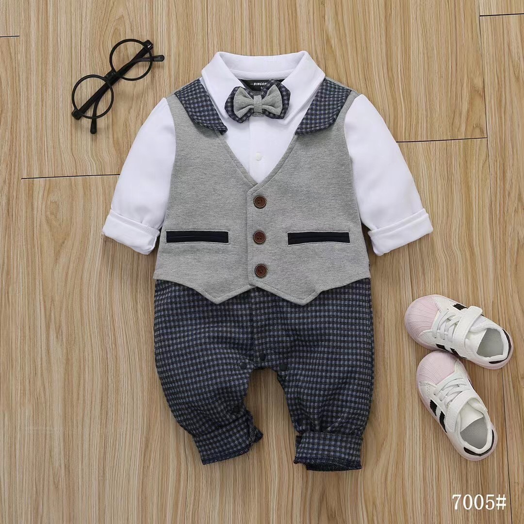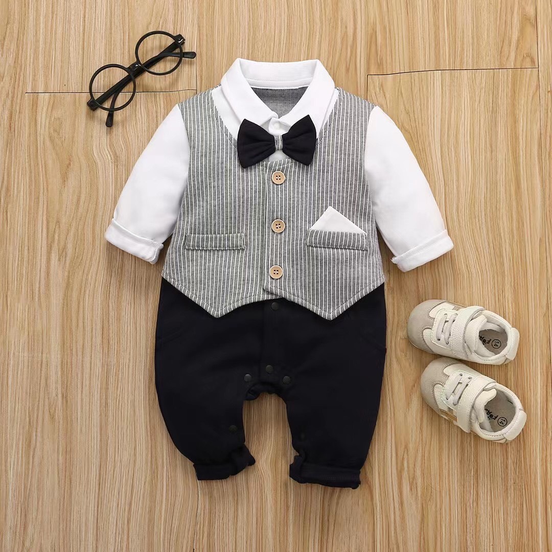 Body giả vest cho bé trai sơ sinh đến 1-2 tuổi dạng liền quần có cài nút phía dưới đáy rất tiện lợi để mẹ thay tã. Set body giả vest cho bé trai vừa lịch lãm mà vẫn rất gọn nhẹ, thoải mái cho bé, tiết kiệm cho bé mẹ (thay vì phải mua các món khác nhau để phối đồ).