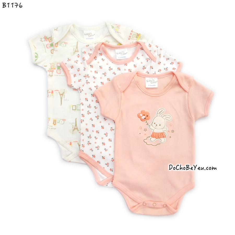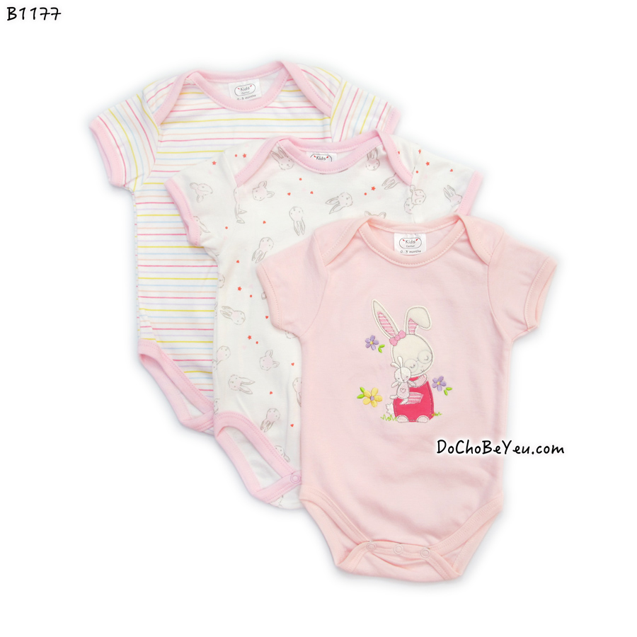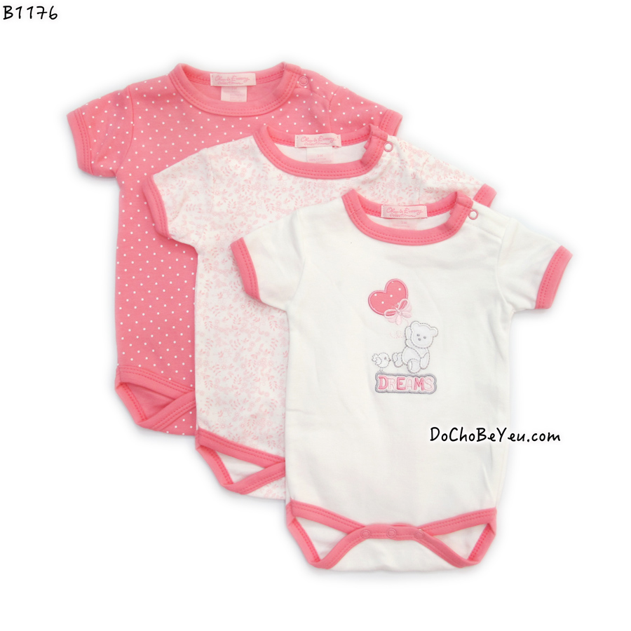 Set 3 body suit cho bé sơ sinh với tông màu, hoa văn trang nhã, chất liệu 100% cotton mềm mịn, đúng hàng xuất khẩu Made in Thailand - bảo đảm an toàn cho bé sơ sinh, mẹ hoàn toàn có thể yên tâm.